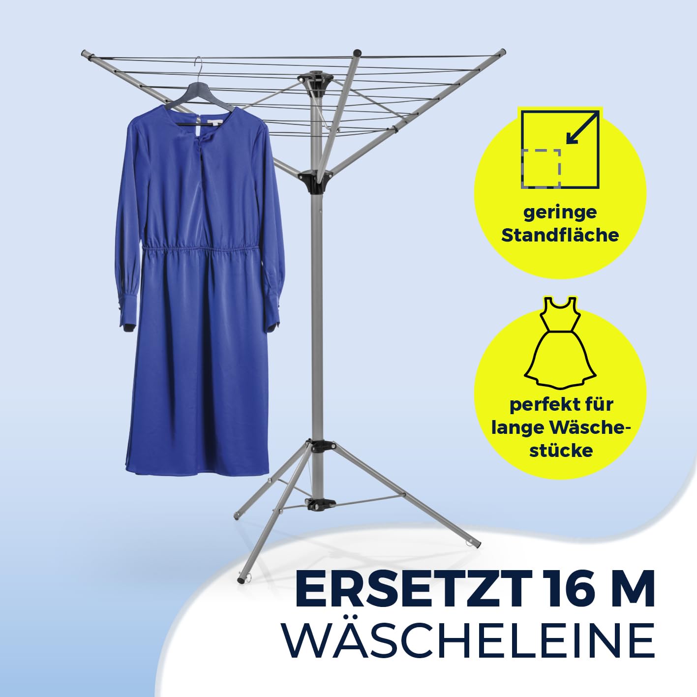 • PRAKTISCH - Mit einer Trocknungsfläche von 16 Metern, bietet die Wäschespinne ausreichend Platz für viel Wäsche und verspricht eine optimale Raumnutzung. Maße aufgeklappt: ca. 140cm x 101cm x 121cm.