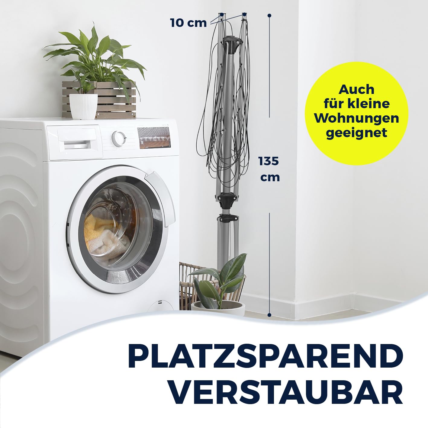 • KOMPAKT - Die Wäschespinne ist mit einem Gewicht von ca. 2kg sehr leicht und handlich und ist somit ideal für jeden Haushalt, ob groß oder klein, geeignet.