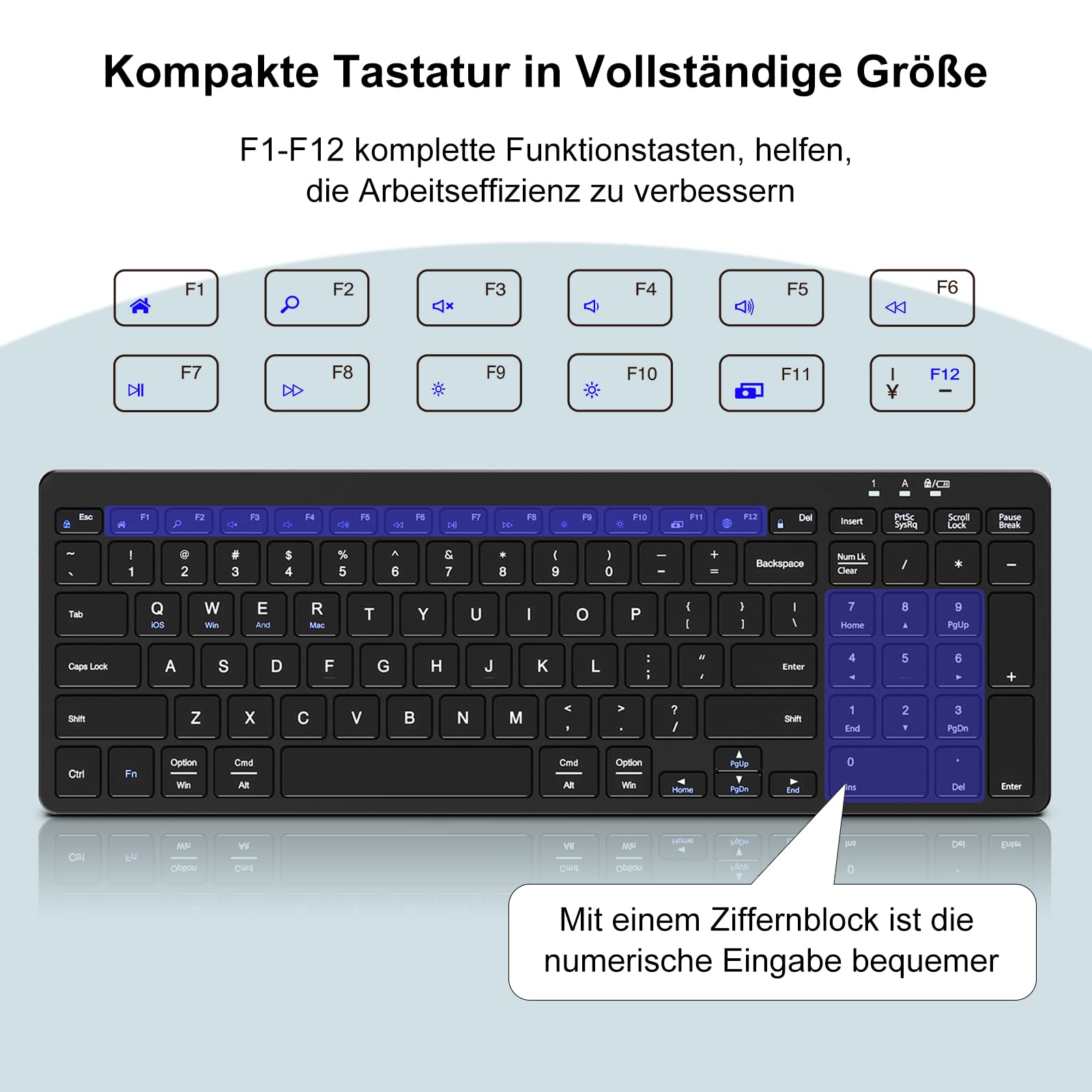 - Universelle Kompatibilität: Die kabellose Tastatur und Maus funktionieren mit den meisten USB Geräten.Mit einem USB-Typ-C-Konverter können mehr Geräte angeschlossen werden. Kompatibel mit Windows/iOS/Mac/Android-Systemen.Für PC/Laptop/iPad