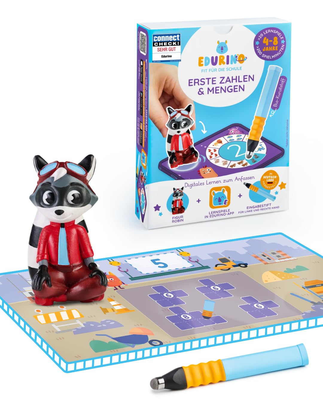 Edurino Starterset Robin Zahlen & Mengen ab 4 Jahren - Stufe 1 inkl. Eingabestift | Zahlen 0-10 | Erstes Rechnen | Geometrische Formen
