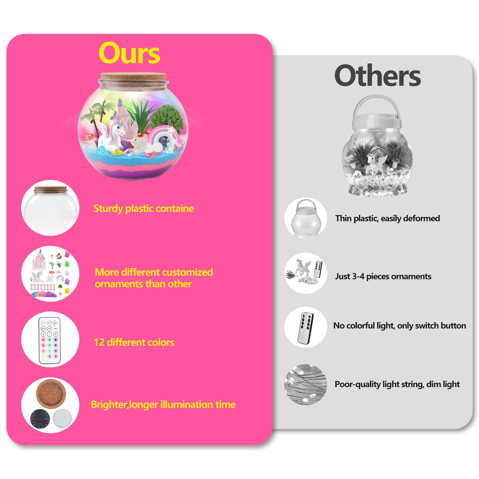 • 【Kreatives DIY Terrarium Set】Wenn Ihr Kind dieses Einhorn-Handwerk macht, beginnt sein Gehirn Geschichten über Einhörner zu fabrizieren. Dies fördert die Förderung der Fantasie und Kreativität der Kinder sowie die Entwicklung ihrer handwerklichen Fähigkeiten und ästhetischen Sinn. Tauchen Sie Ihr Kind in natürliche Entdeckungen und fantasievolle Spiele ein.