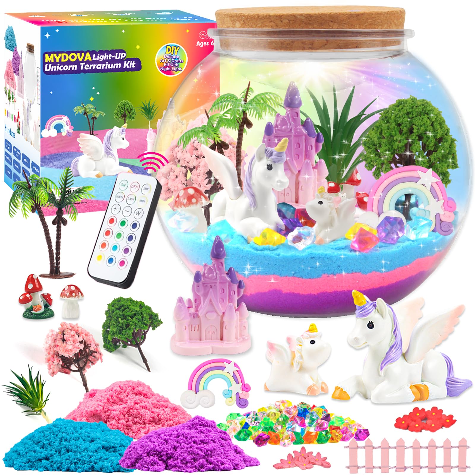 Einhorn Geschenke für Mädchen, DIY Einhorn Terrarium Bastelset mit Timing Fernbedienung und farbigen Lichtern, Nachtlicht Basteln, Wissenschaft Kit, Spielzeug für Mädchen ab 6, 7, 8+ Jahren