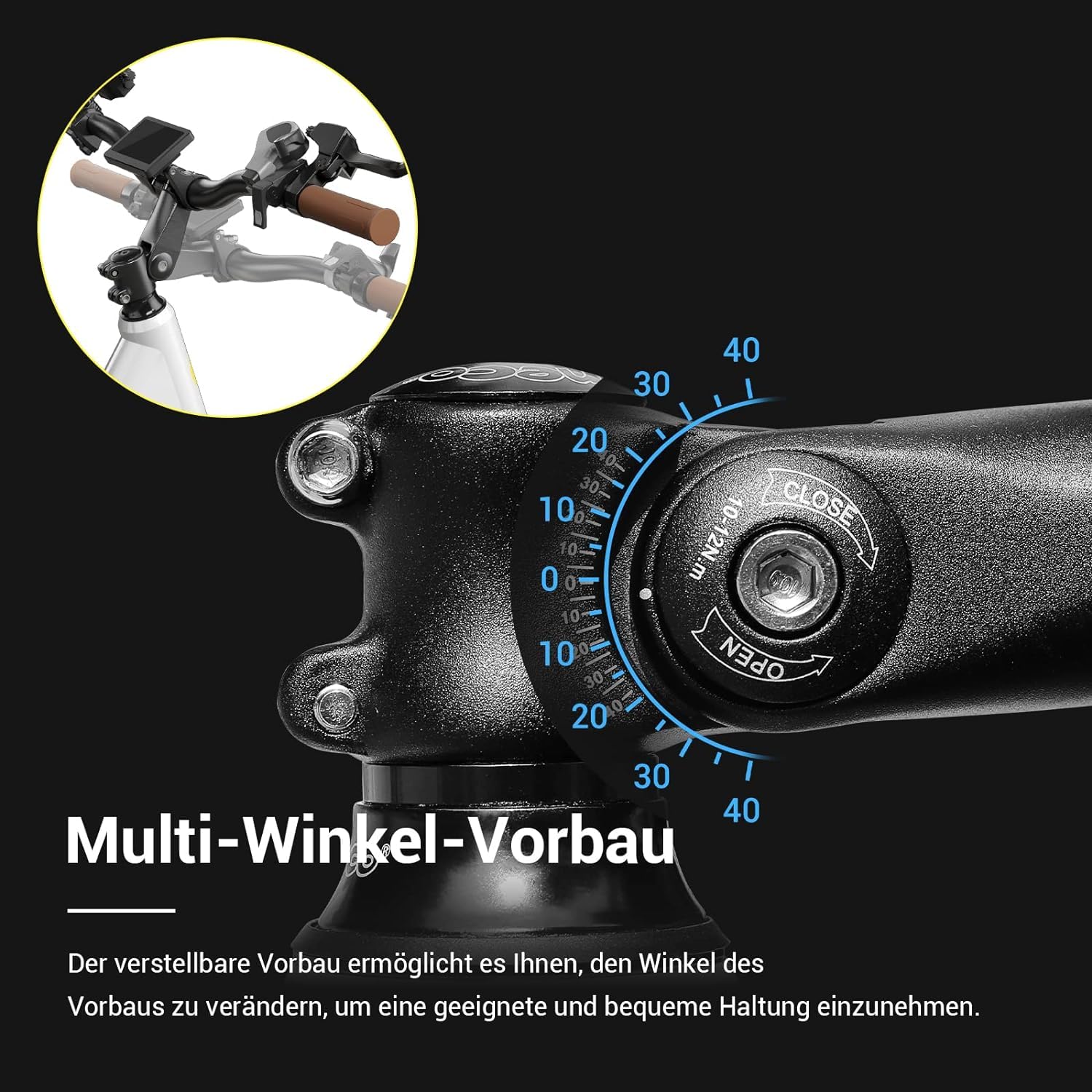 • 🚲【𝐌𝐮𝐥𝐭𝐢-𝐀𝐧𝐠𝐥𝐞 𝐕𝐨𝐫𝐛𝐚𝐮 𝐮𝐧𝐝 𝐂𝐨𝐳𝐲 𝐒𝐚𝐭𝐭𝐞𝐥】Das T1 Step-Thru Modell ist mit einem gemütlichen 𝐒𝐞𝐥𝐥𝐞 𝐑𝐨𝐲𝐚𝐥-𝐒𝐚𝐭𝐭𝐞𝐥 und einem verstellbaren Vorbau verbessert, der es Ihnen ermöglicht, den Vorbauwinkel für eine geeignete und bequeme Haltung zu ändern.