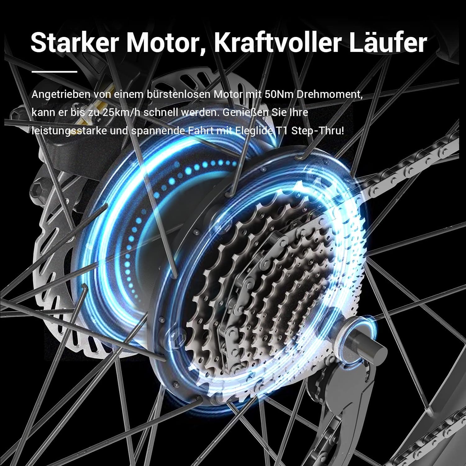 • 🚲【𝐋𝐞𝐢𝐬𝐭𝐮𝐧𝐠𝐬𝐬𝐭𝐚𝐫𝐤𝐞𝐫 𝐌𝐨𝐭𝐨𝐫 𝐮𝐧𝐝 𝐠𝐫𝐨ß𝐞𝐫 𝐀𝐤𝐤𝐮】 T1 Step-Thru E bike verfügt über einen 𝟐𝟓𝟎𝐖 starken bürstenlosen Motor mit 𝟓𝟎𝐍.𝐌 Drehmoment, der Sie mit konstanter und starker Leistung versorgt und dem Fahrrad eine Geschwindigkeit von bis zu 25km/h ermöglicht. Mit einem austauschbaren 𝟑𝟔𝐕, 𝟏𝟑𝐀𝐡 Lithium-Ionen-Akku kann es bis zu 𝟏𝟎𝟎𝐊𝐌 im Unterstützungsmodus fahren. Das City-Elektrofahrrad ist ideal für alle, die ein Elektrofahrrad mit besonders großer Reichweite suchen, für lange Fahrten und Outdoor-Abenteuer.