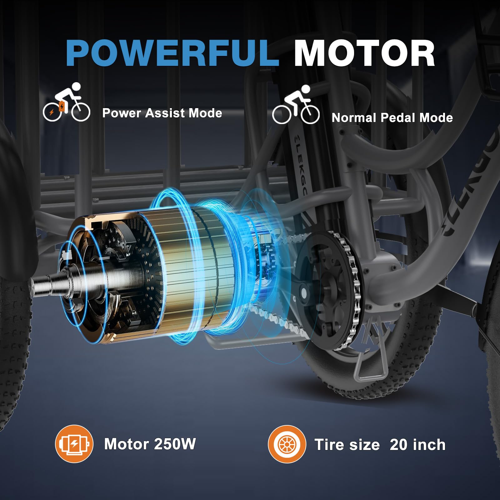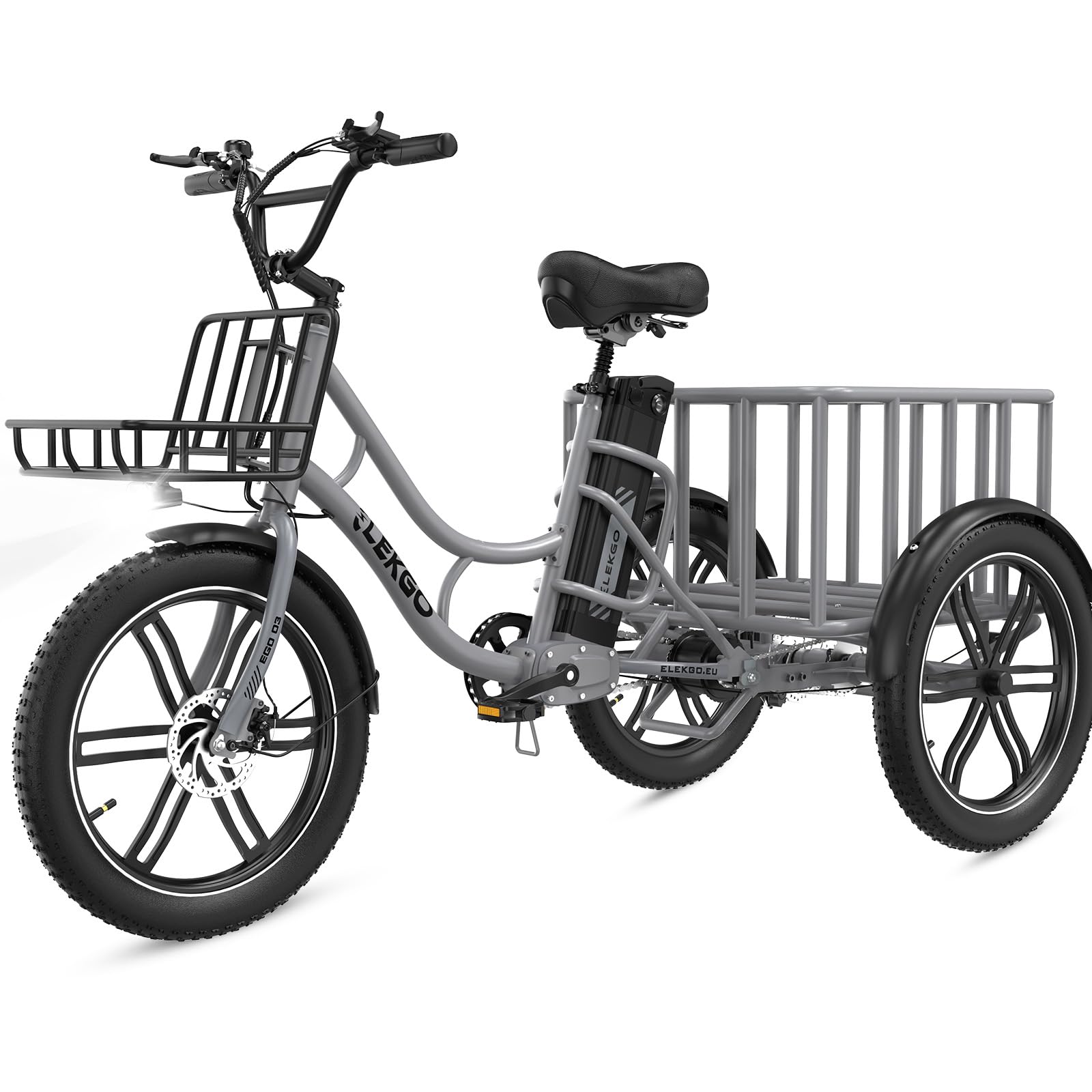 ELEKGO 20 Zoll E Bike Dreirad, 48V 18AH abnehmbare Batterie Tragfähigkeit 200 KG, Fettreifen + hinterer Gepäckkorb und Scheinwerfer, Lastenfahrrad, Elektro-Dreirad für Reichweite bis zu 40-60Km (GARY)