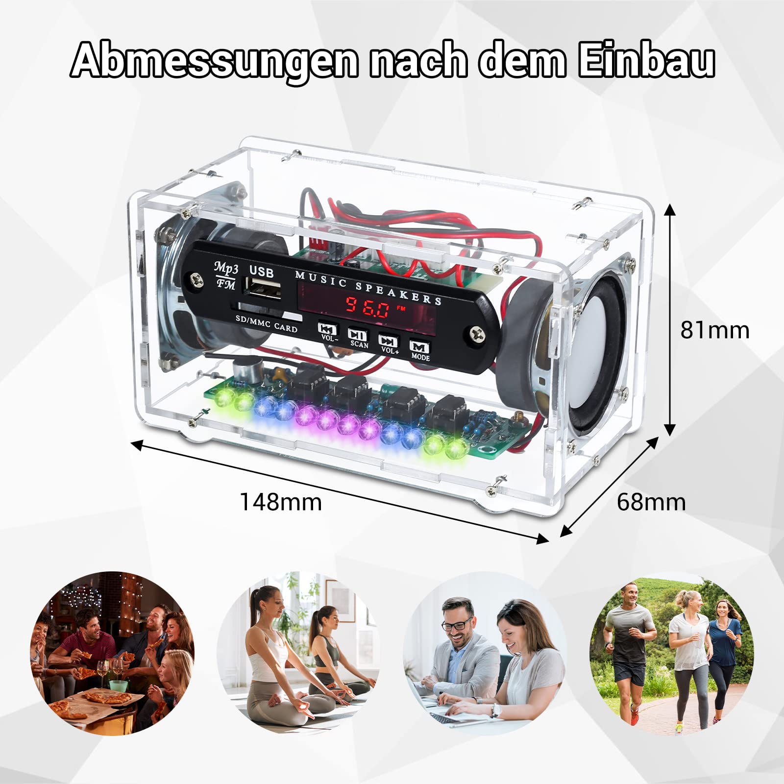 • 【2 in 1 Audioerlebnis】Unser vielseitiger Elektronikbausatz funktioniert nicht nur als Bluetooth-Lautsprecher, sondern dient auch als FM. Bluetooth Bedienung. Dieses Kit kann nicht nur über Bluetooth, sondern auch über USB-Stick oder SD-Karte Musik abspielen.