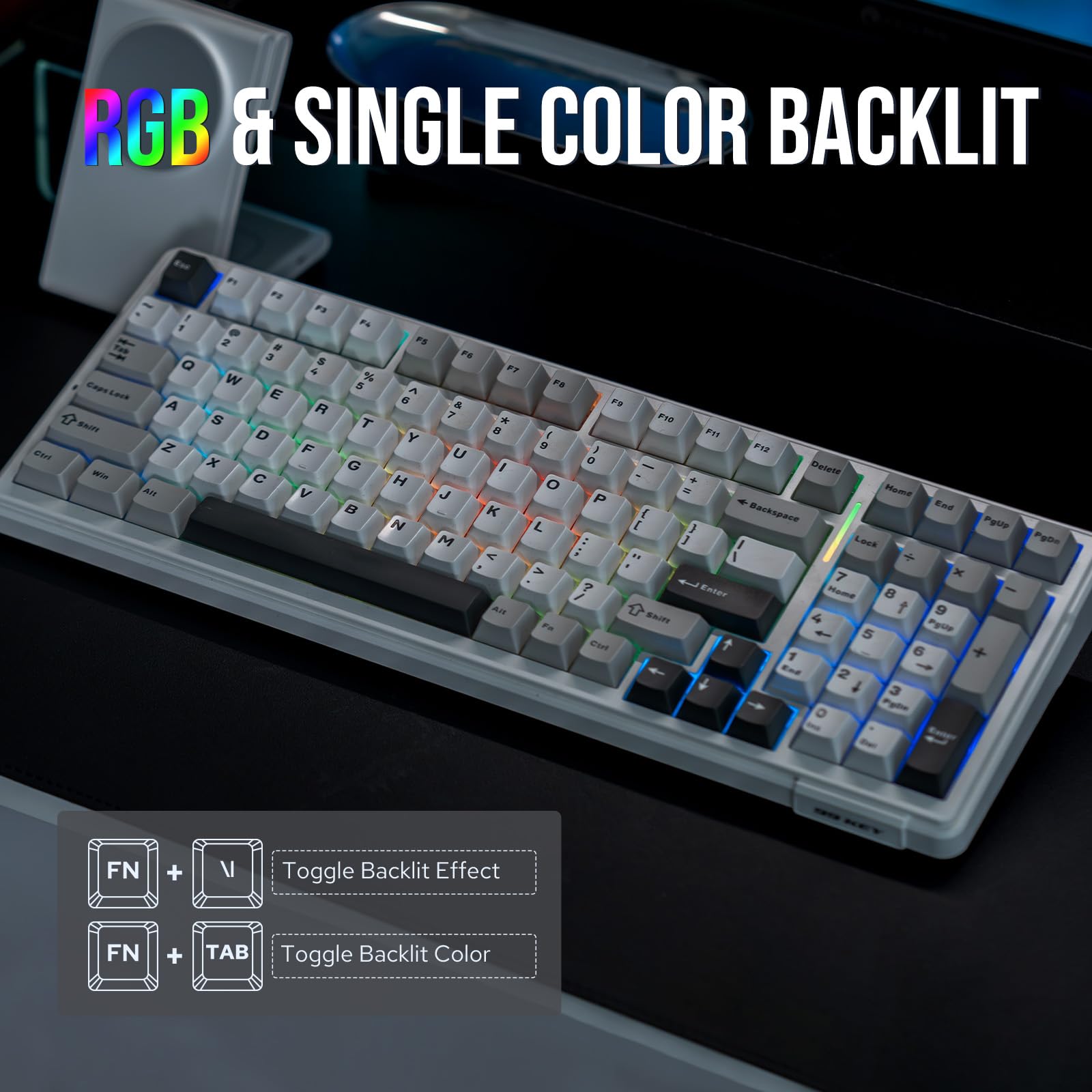 EPOMAKER x Aula F99 Kabellose mechanische Tastatur, Tastatur Gasket mit Hot-Swap, Polsterung, Bluetooth, 8000 mAh, NKRO, RGB, für Gaming/Win/Mac(F99 Grey, Nimbus Switch)