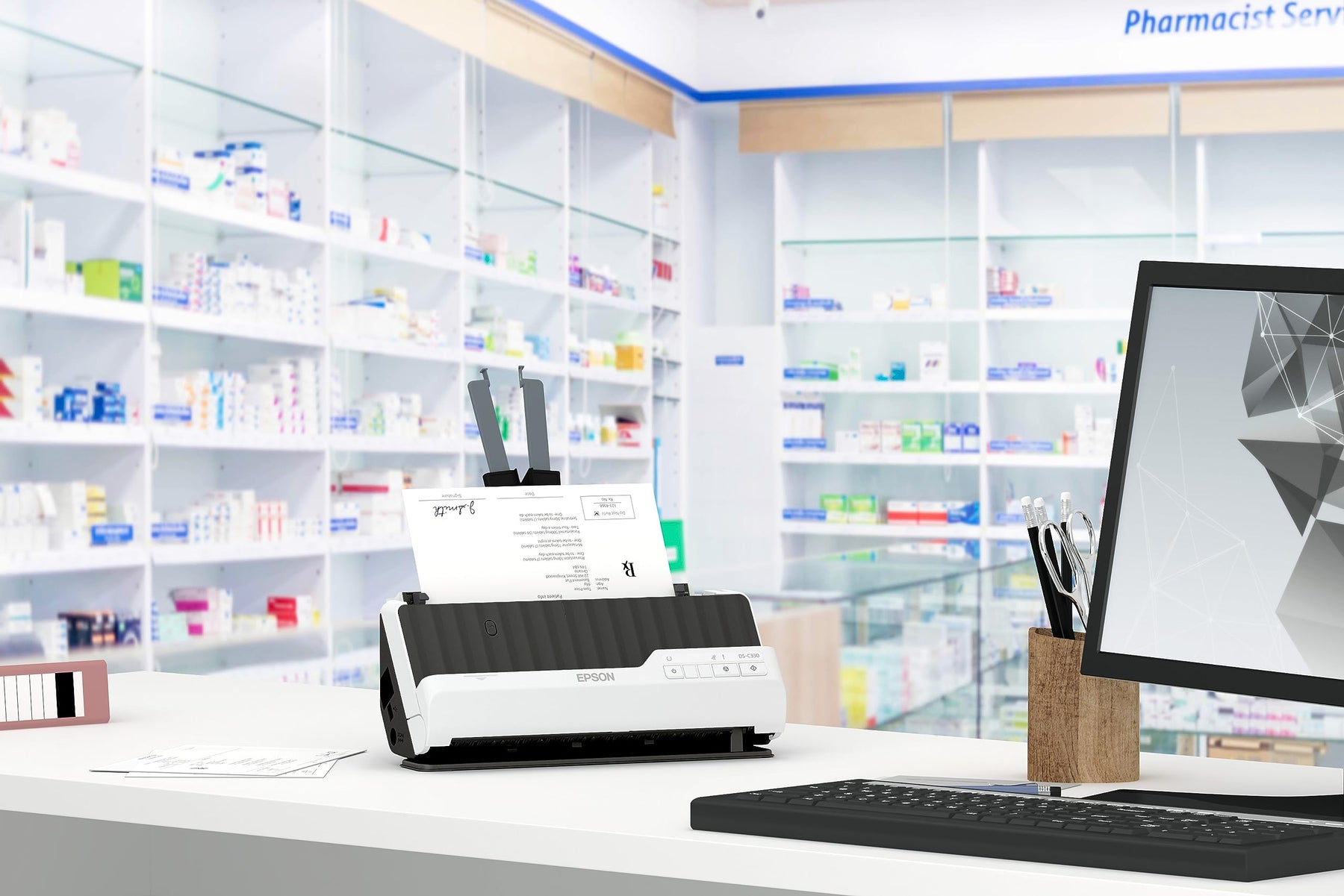 Epson Desktop Scanner DS-C330, kompakter A4 Business Scanner mit geringem Stromverbrauch, Duplex-Einzugscanner mit vielseitiger Medienverarbeitung, schwarz/weiß