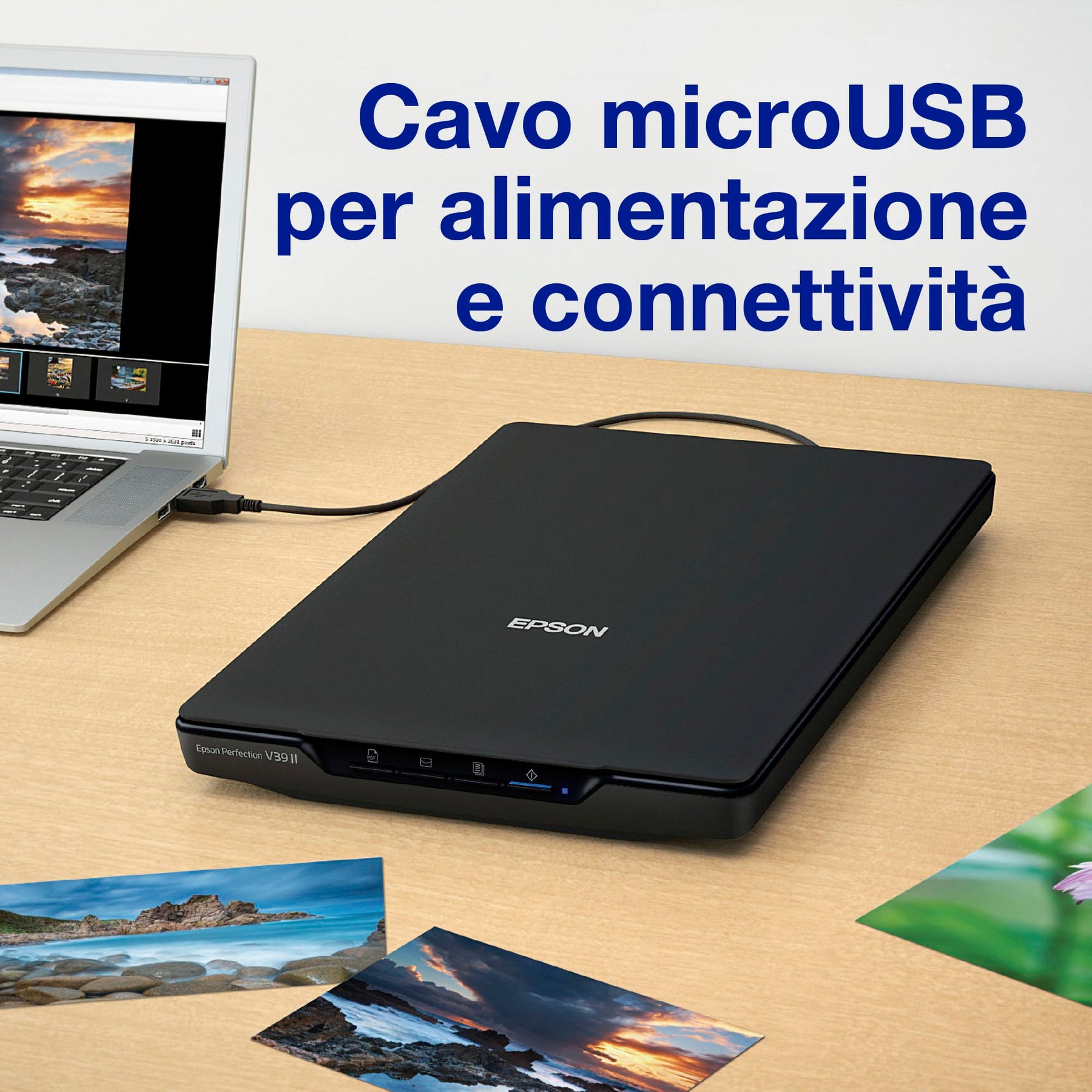 - Schnelle, hochwertige Ergebnisse - Mit seiner Auflösung von 4.800 dpi und hohen Scangeschwindigkeit liefert der V39II im Handumdrehen hochwertige Ergebnisse. Mit der Epson Easy Photo Fix-Software sorgen Sie für eine optimale Wiedergabe Ihrer alten Fotos. Sie verbessert die Qualität Ihrer Scans, indem sie Staub beseitigt, ausgeblichene Farben wiederherstellt und die Hintergrundausleuchtung korrigiert. Auch Ihre gescannten Dokumente überzeugen durch ein perfektes Erscheinungsbild, denn der V39II bietet eine Reihe von Verbesserungsfunktionen, mit denen Sie die Textschärfe erhöhen und bei doppelseitigen Dokumenten unerwünschtes „Durchscheinen“ entfernen können.