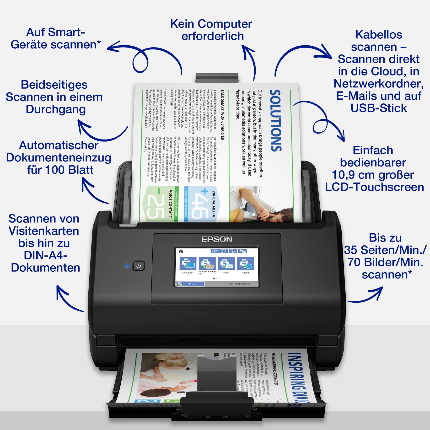 Benutzerfreundlicher Dokumentenscanner mit automatischem Einzelblatteinzug, 10,9 cm großen LCD-Touchscreen und Funktionen zum direkten Scannen sorgt für eine umfassende Zeitersparnis.