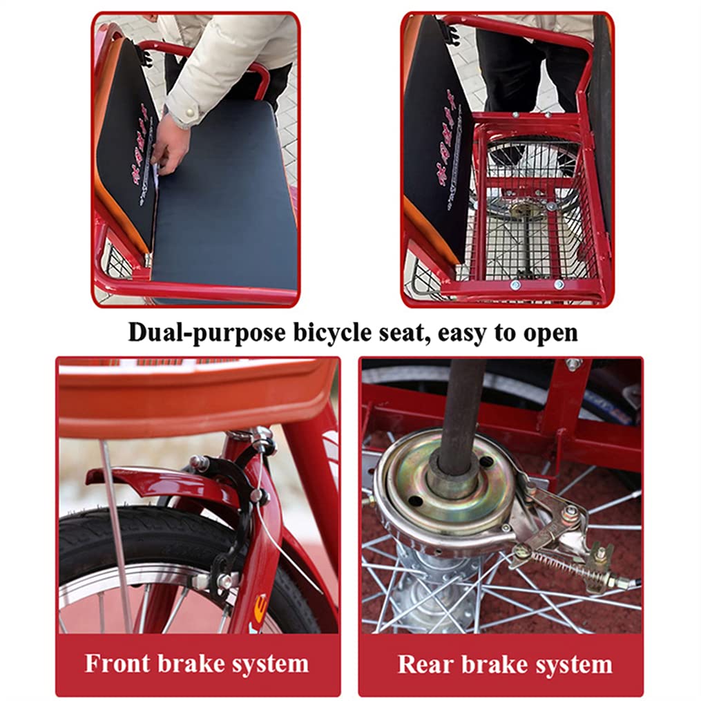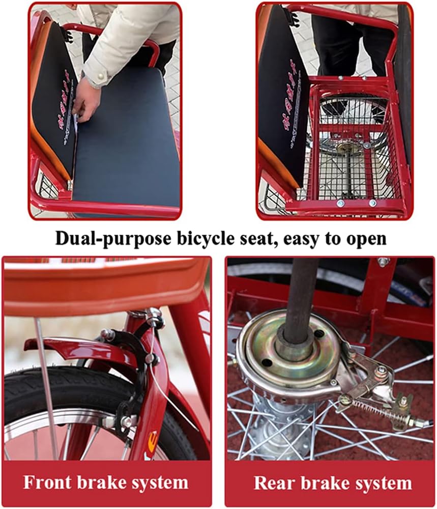 - ●Einkaufswagen mit Korb: Unser Dreirad hat einen großen hinteren Korb, der zum Einkaufen und Laden von genügend Dingen praktisch ist. Sehr gut geeignet für Freizeit, Einkaufen, Sport oder jede beliebige Zeit/Ort. Ausgestattet mit einem weichen Sattel, ist die Höhe verstellbar und die Rückbank bequem.