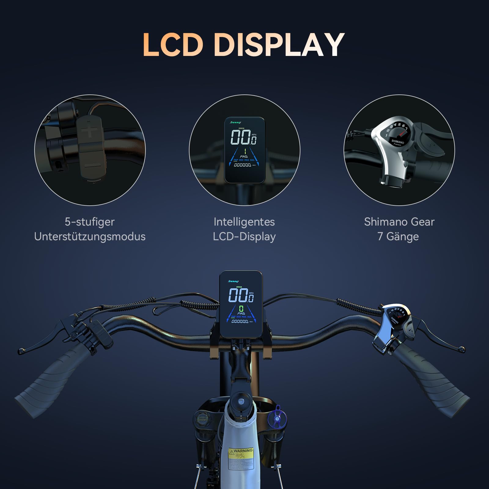 Das Elektrofahrrad ist mit einer professionellen 7-Gang Kettenschaltung am Hinterrad ausgestattet, die eine schnelle und einfache Fahrt ermöglicht.