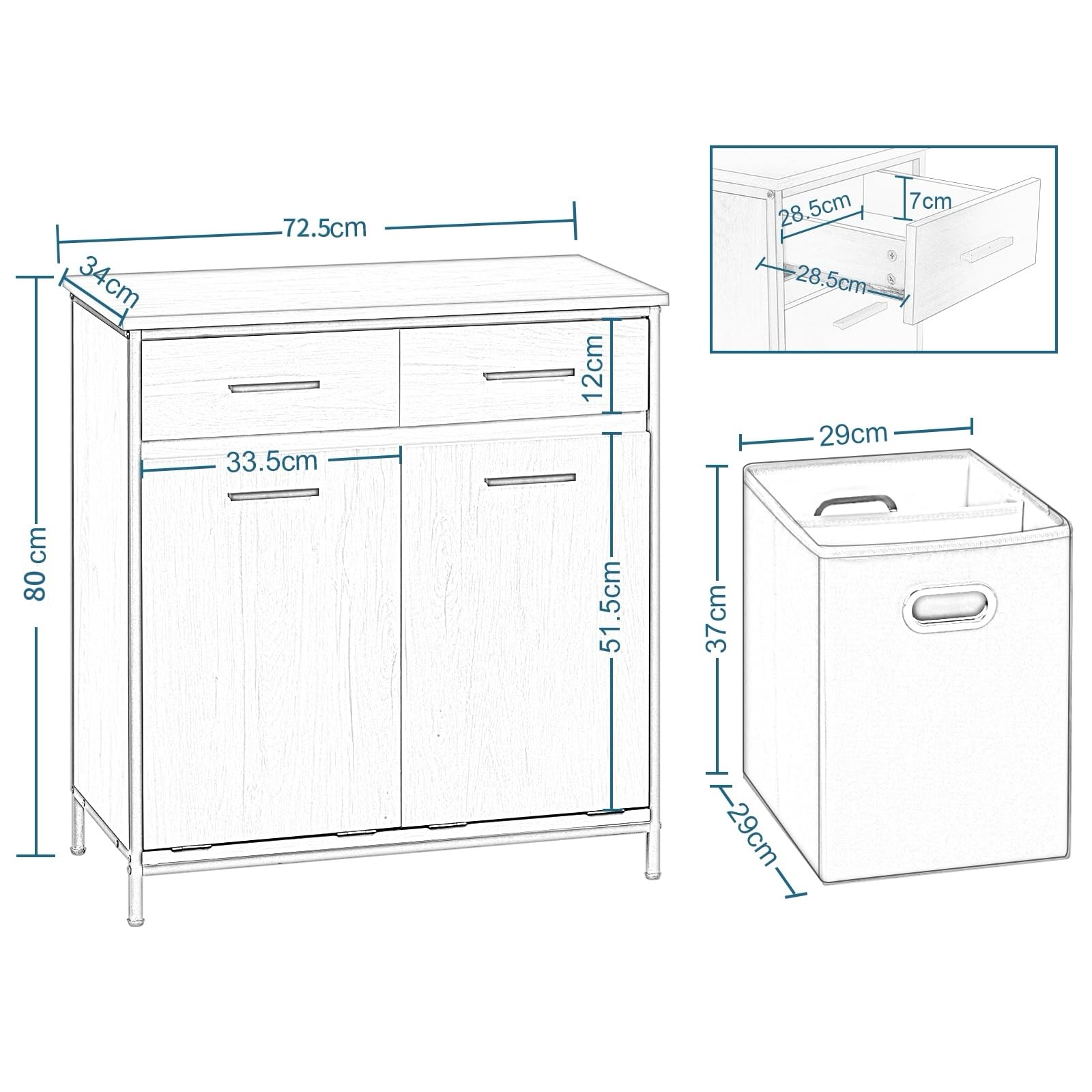- 3 in 1: Mit 2 Schubladen, 2 verbogenen Wäschesäcken und der Abstellfläche für Dekoartikel wird dieser Wäscheschrank Ihren unterschiedlichen Aufbewahrungsbedürfnissen gerecht! Gesamtabmessungen: 72,5x80x34 cm