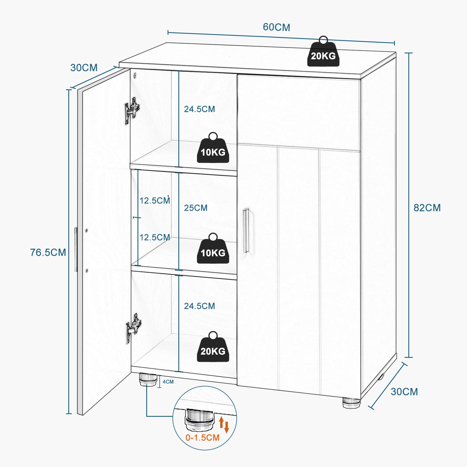 - SCHWERLAST-ECKSCHRANK: Dank 4 Metallfüße mit PP-Pads (0-1,5 cm höhenverstellbar) passt sich der Schrank unebenen Böden an und ist robust genug, um bis zu 60 kg zu tragen. Die Türen mit Metallscharnieren sind langlebig und lassen sich leicht öffnen