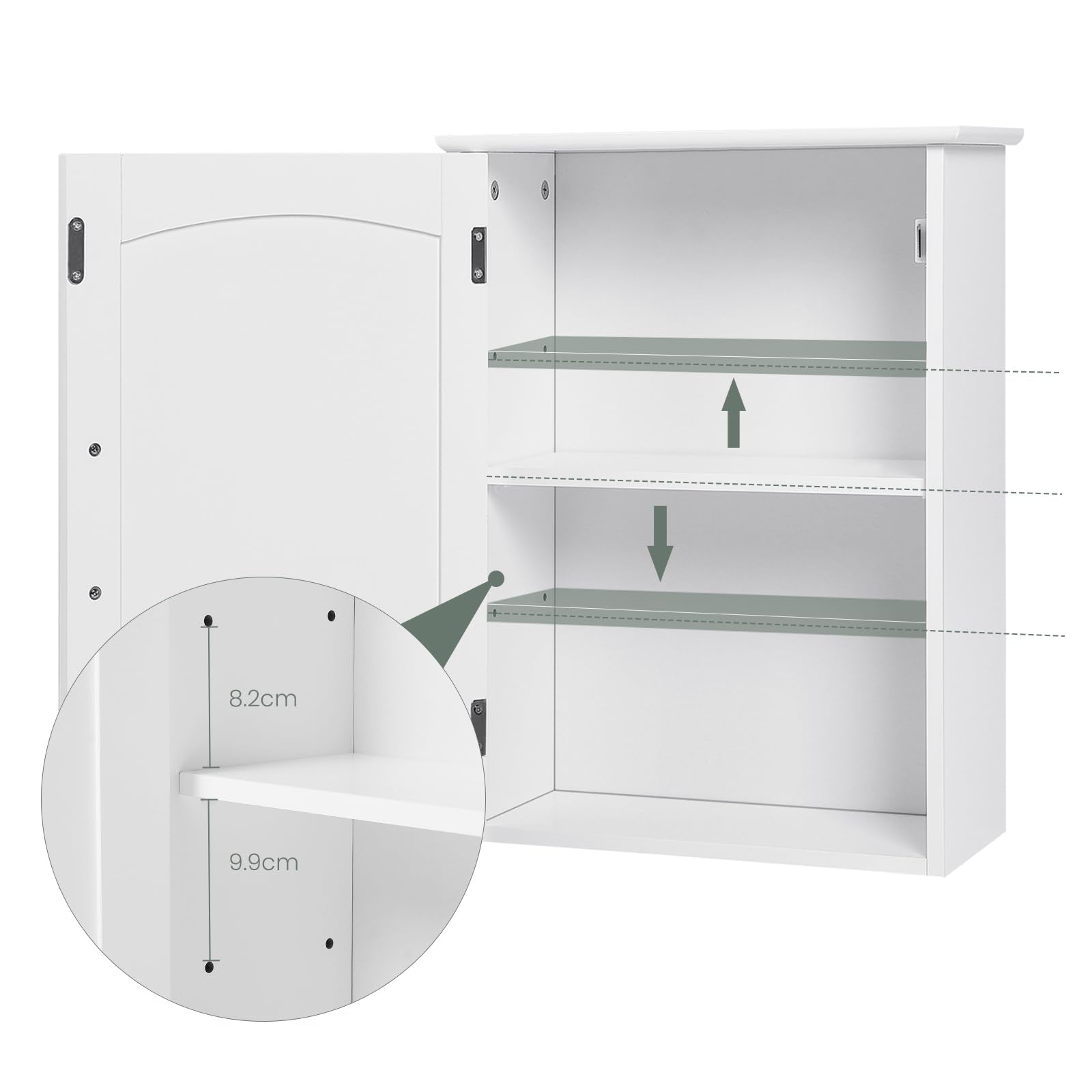 Verstellbare Ablage: Der Regalboden hinter der Tür des hängenden Badezimmerschranks ist in 3 Höhen anzubringen, also um 6,4 cm nach oben/unten verstellbar, um einen maßgeschneiderten Stauraum für Toilettenartikel unterschiedlicher Höhen zu schaffen