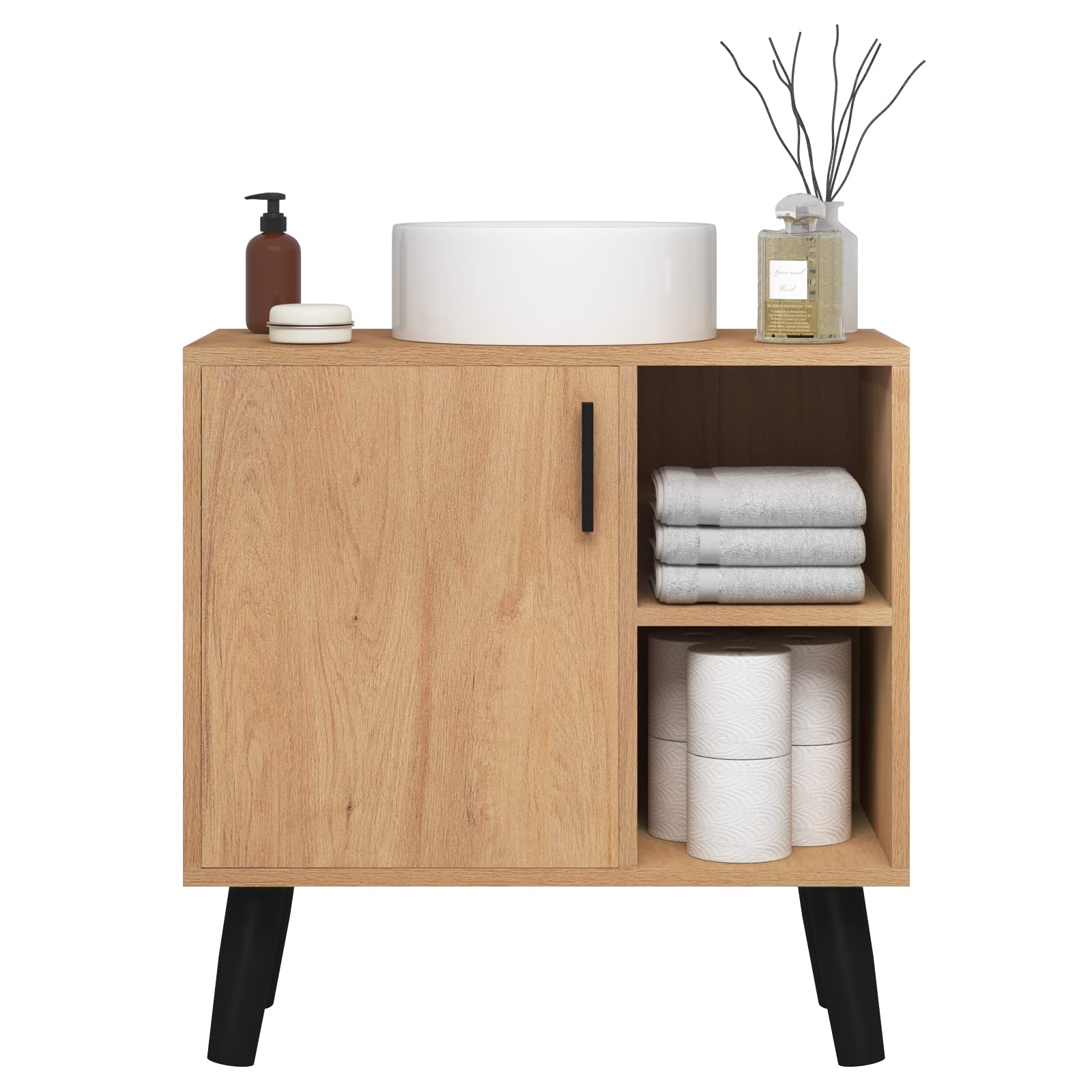 - Großer Stauraum:Mit einem großen Schrank mit Tür (B34xH42xT28 cm) und 2 offenen Ablagen (jeweils B21xH20xT29,5 cm) hat das Badmöbel gut gestaltete Stauräume, die die Aufbewahrung von Handtüchern, Haarschmuck, Toilettenpapier usw. erleichtern