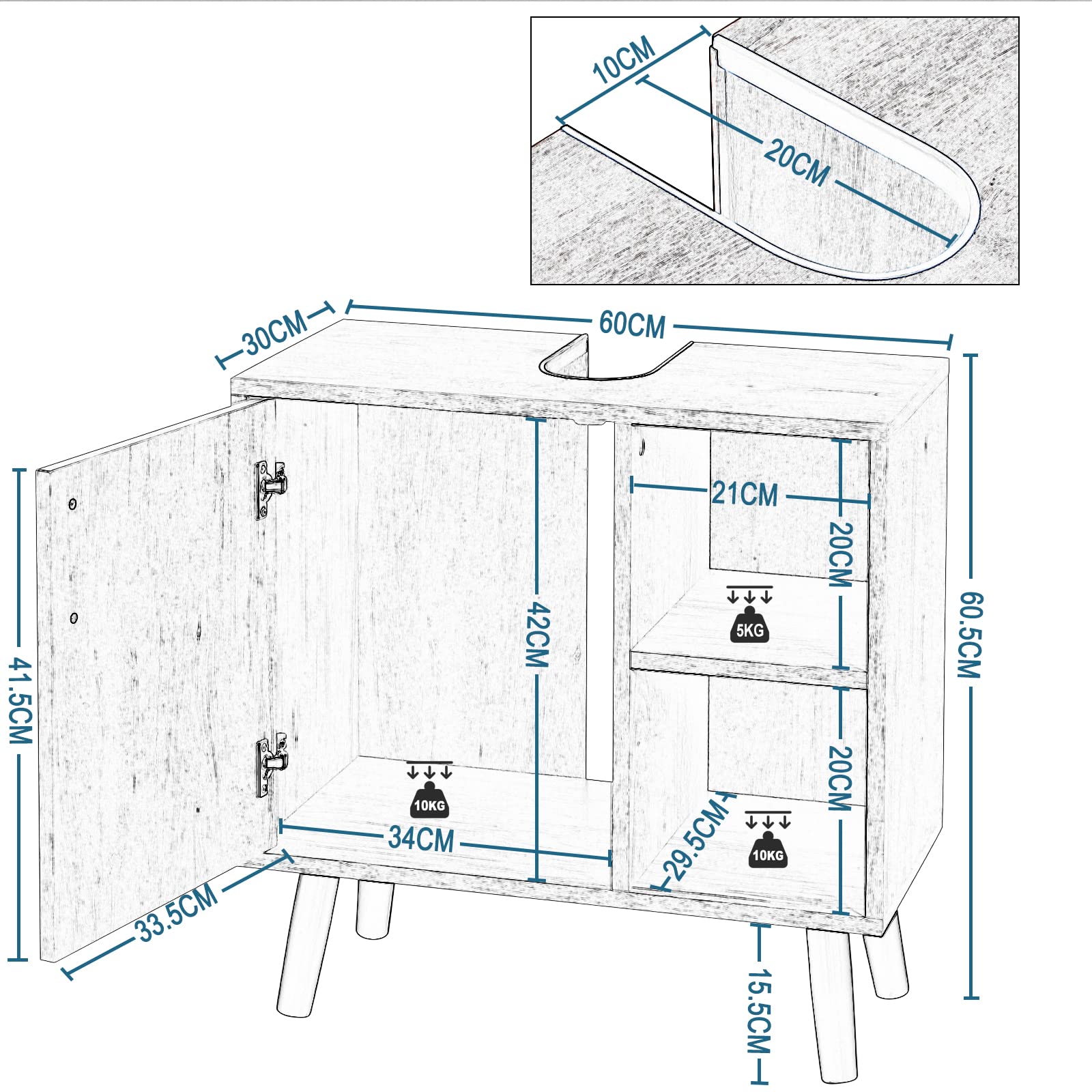 - Platzsparend: Der Badschrank unter dem Waschbecken misst 60x60,5x30 cm (BxHxT), nimmt wenig Platz ein, schafft aber ein geordnetes und funktionales Badezimmer für Sie. Geeignet für die Größe des Siphonlochs: 20x10 cm