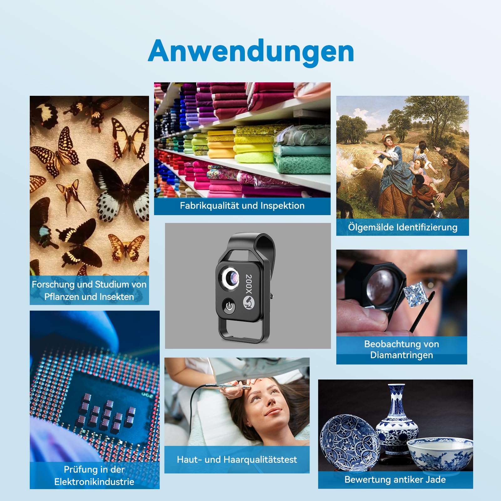 - [200x Telefon-Mini-Mikroskop] Hohe Vergrößerung während Sie mit der Handy-Vergrößerung kooperieren Funktion ermöglicht es, die kleinsten Details bis zu 200X zu sehen und und genieße die Welt, die mit unseren Nackten nicht beobachtet werden kann Augen.