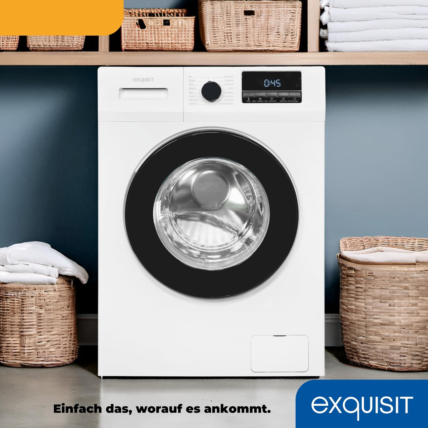 - Dank des 85,0 x 60,0 x 52,0 cm großen und freistehenden Designs lässt sich die Waschmaschine flexibel in jeder Wohnung aufstellen