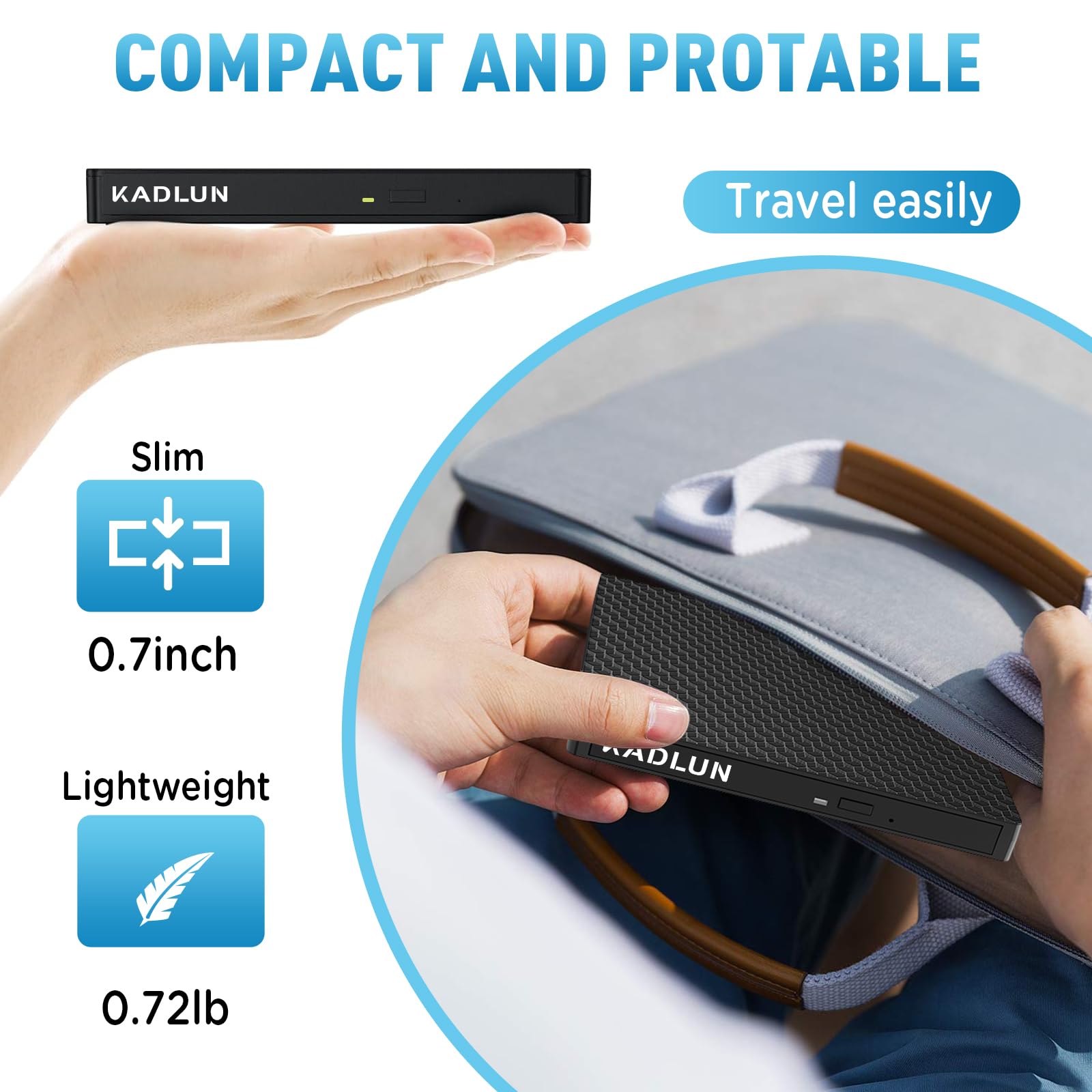 - 【Plug & Play CD Player】 CD-Laufwerk externes USB, keine Notwendigkeit für externe Treiber und Stromversorgung. Stecken Sie es einfach in Ihren USB-Anschluss, dann wird unser KADLUN externer DVD-Brenner erkannt. USB 3.0 dvd laufwerk extern ist ein perfekter Begleiter für Computer ohne das interne Laufwerk