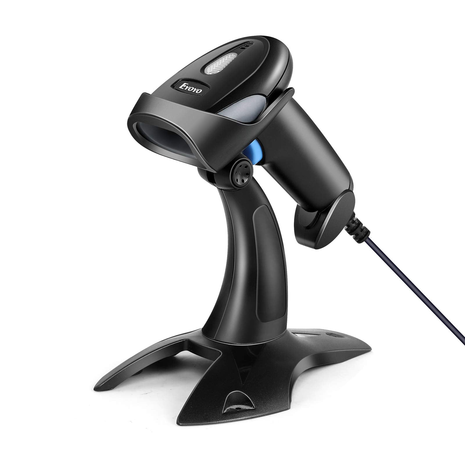 Eyoyo 1D 2D QR Barcode Scanner with Stand, Handheld USB Wired Scanner for Inventory Management, Portable Bar Code/QR Code Reader Screen Scanning Auto Sensing- Handsfree Scanner
