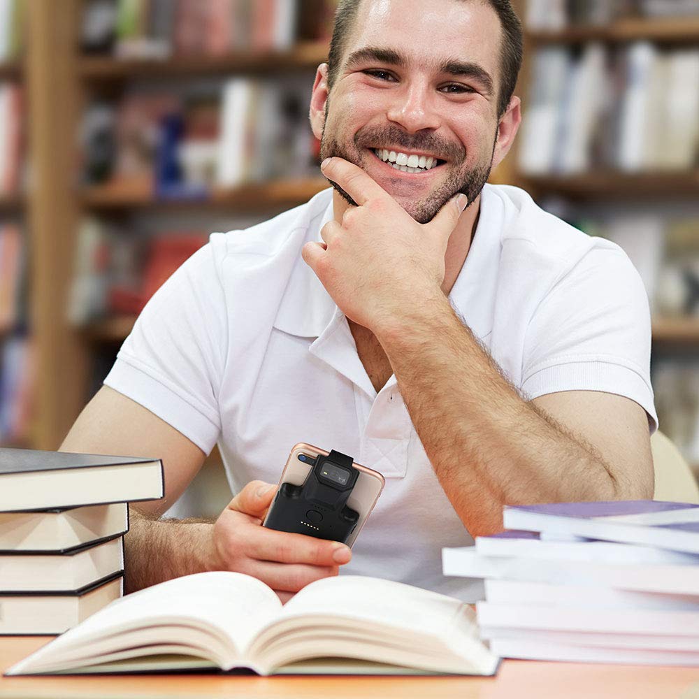 - Handy-Clip Design: Design mit nur 90 g / 3,1 Unzen Gewicht und einziehbarer Halterung, der Barcodescanner kann leicht auf Handys mit einer Länge von 5,4-6,5 Zoll installiert werden. (Hinweis: Sie müssen die Handyhülle entfernen und dann den Barcodescanner installieren Sie können den Barcodescanner überall verwenden, wo Sie möchten. Nehmen Sie Ihr Telefon heraus und scannen Sie den Barcode den Sie scannen möchten