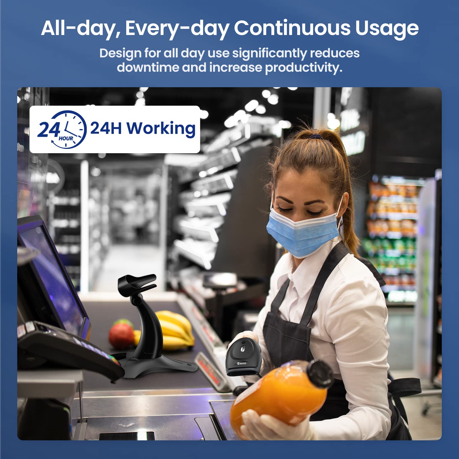 - 【24 Hours All Days Working】: This usb barcode scanner is designed for continuous usage all day as it is always ready for the next scan, no need to charge, which significantly reduces downtime, easily improve customer service and increase productivity. Great tools for small bussiness. Can be used in supermarkets, convenience stores, warehouse, library, drugstore, retail shop for file management, inventory tracking and POS(point of sale), etc.