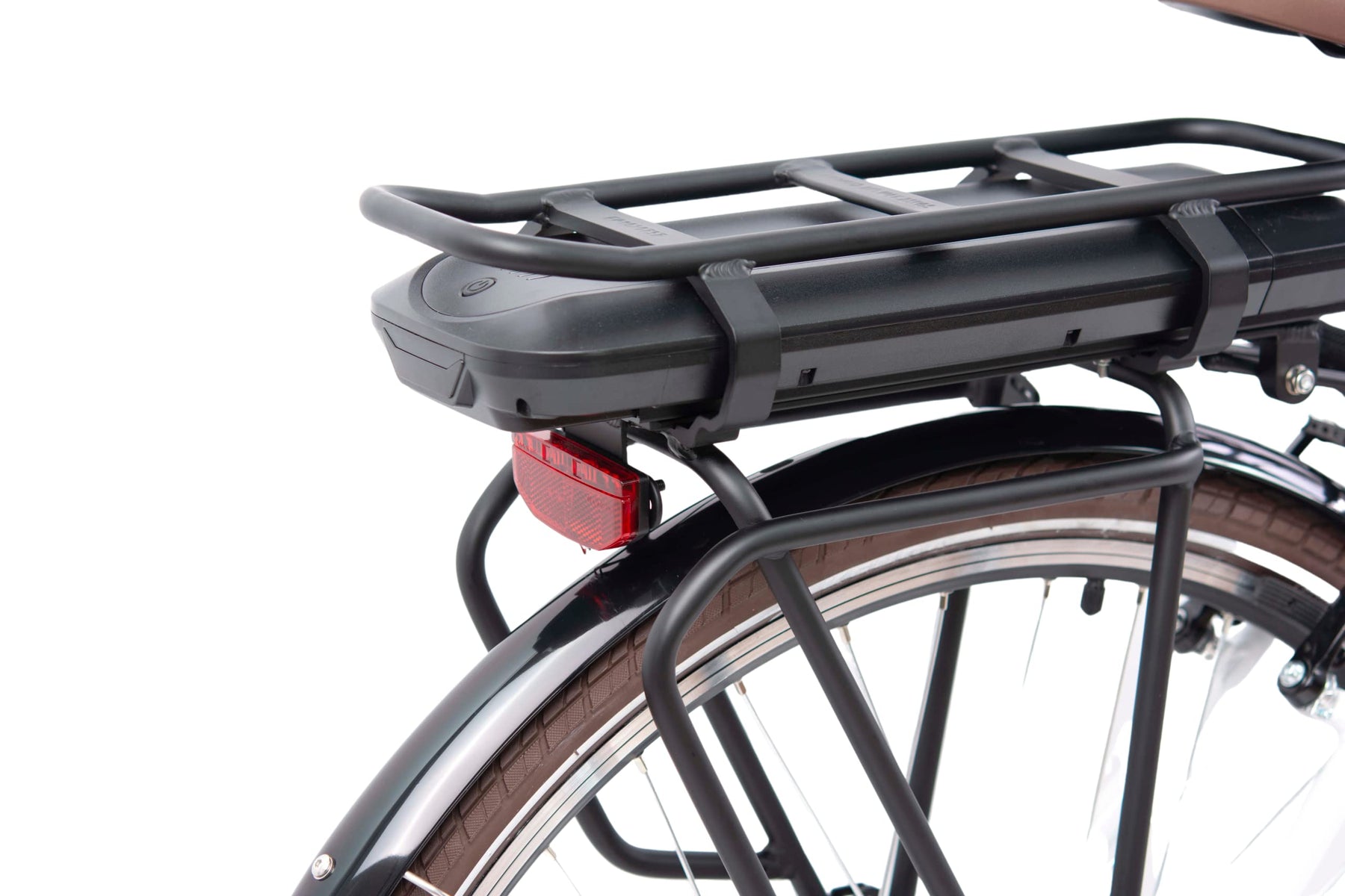 - LANGE BATTERIE-LEBENSDAUER: Mit einer herausnehmbarer Lithium - Akku mit 36V , 10.4Ah und 374.4Wh, der praktisch unter dem Gepäckträger verstaut ist, kann dieser Elektrofahrrad mit Pedal Assist mit einer einzigen Ladung bis zu 90 km im ECO-Modus (abhängig von Wetterbedingungen, Fahrweise, Gewicht des Fahrers und sein Gepäck, Straßenzustand usw.) zurücklegen.