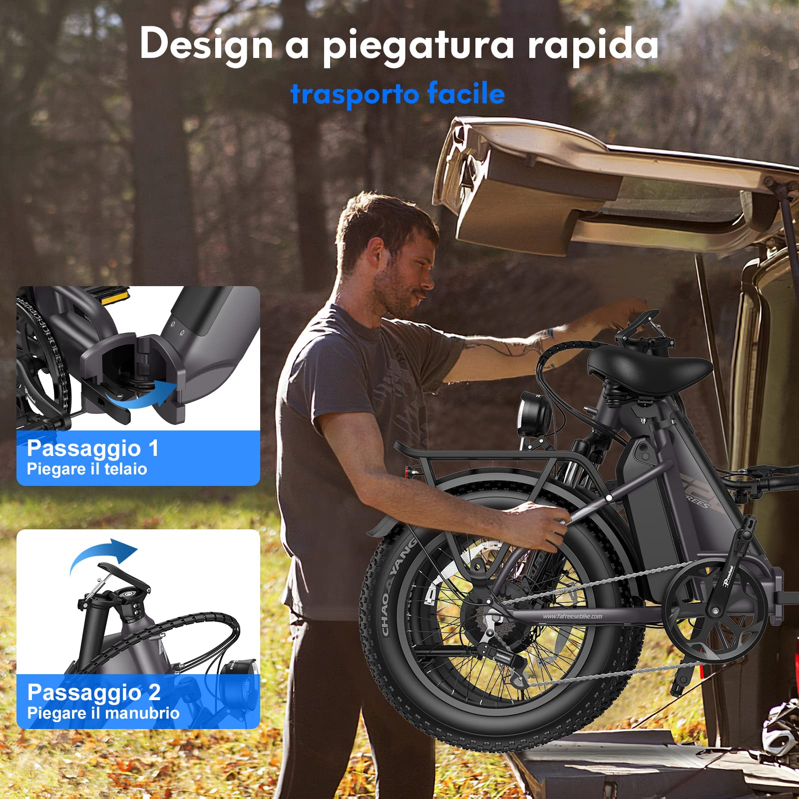 Fafrees 2 Elektro-Fahrradbatterien, 20 x 4,0 Zoll (20 x 4,0 Zoll), klappbares E-Bike für Herren, 48 V / 10,4 Ah x 2 (20,8 Ah insgesamt), E-Bike mit Pedalunterstützung 140 km, Fat-Bike für Damen (blue)