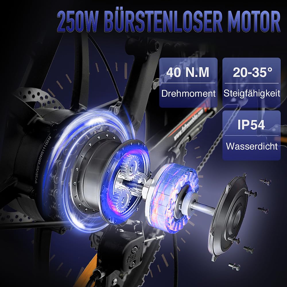 [Ausgedehnte Reichweite] Fafrees E-Bike sind mit einem abnehmbaren 36V/16Ah Lithium-Ionen-Akku und einem 250W-Hochleistungsmotor ausgestattet, haben eine starke Leistung, eine Höchstgeschwindigkeit von bis zu 25 km/h, eine Reichweite von ca. 60-80km mit einer 7-8h-Ladung und eine maximale Reichweite von 100-130km im Tretunterstützungsmodus.