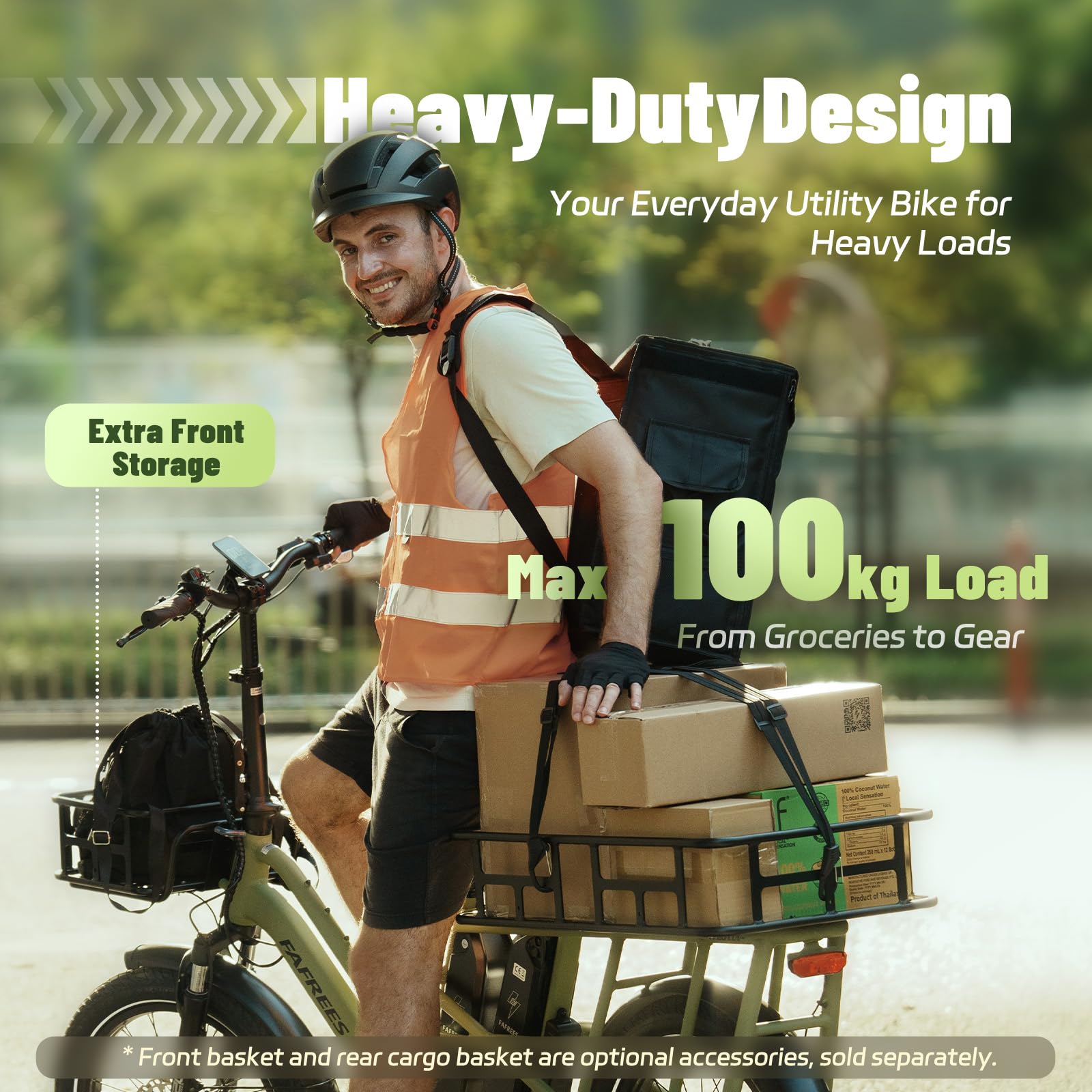 - ⚙️ HOCHBELASTBAR & PRAXISGETESTET: - Extreme Zuladung: Bis zu 200 kg Gesamtlast – ideal für Großeinkäufe, Sportausrüstung oder Wochenendtrips. - Aufteilung: 150 kg (den Fahrer) + 20 kg (Vorderkorb) + 100 kg (hinterer Gepäckträger). - Alltagstauglichkeit: Robustes Design für zuverlässige Performance bei jeder Fahrt.