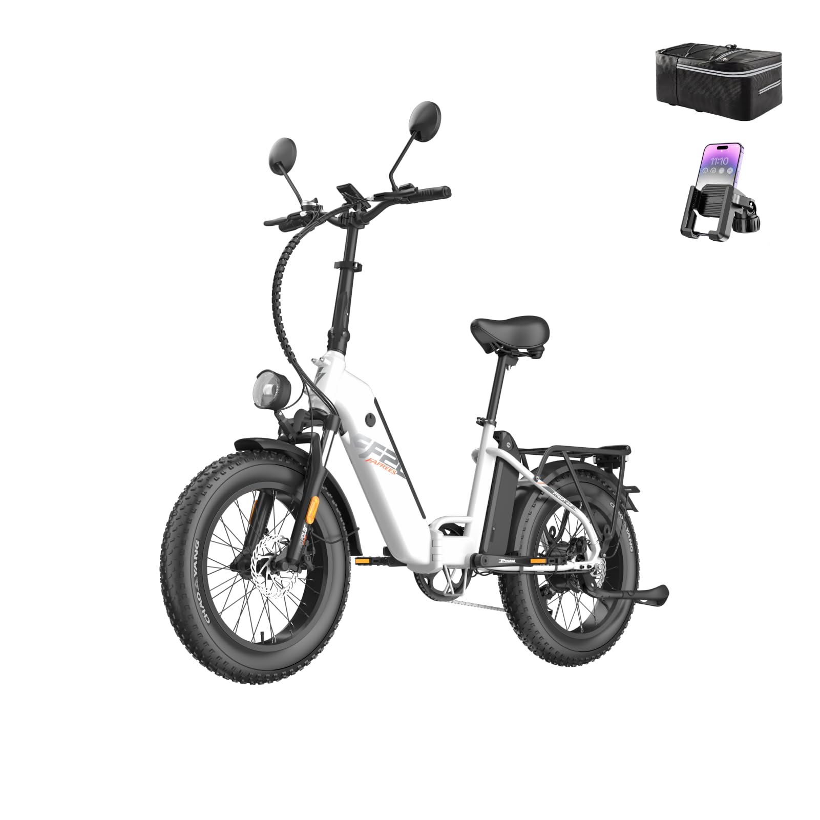Package contains1*FF20 Polar ebike1*Charger1*Owner's manual1*Gift box( Includes 2* brake pads, 1* inner tube, 2* valve caps, 2* reflectors, 1* multi-functional tool, 1* 13/15 wrench, and 1* keychain)