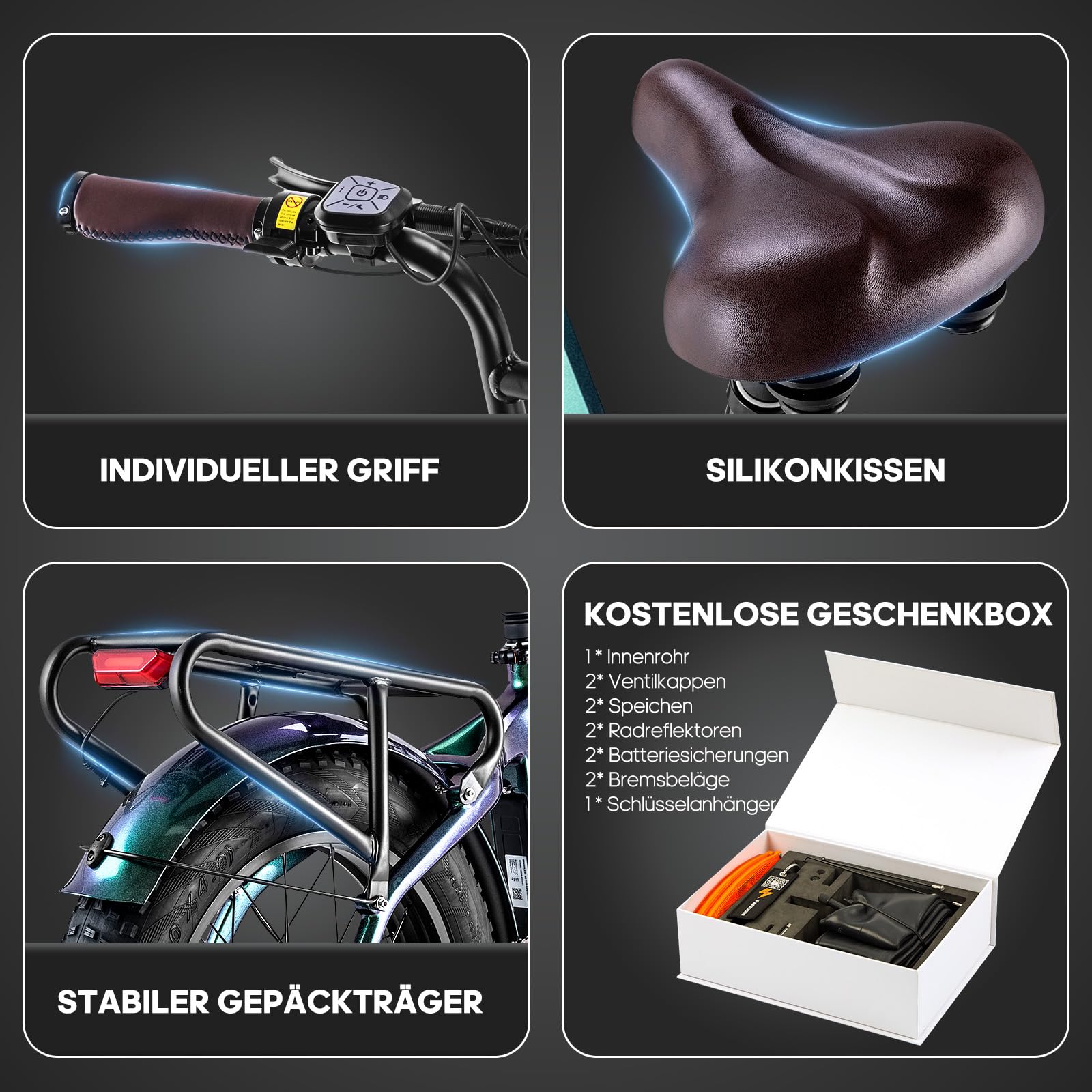 • 🎄Sicherheit: Fafrees F20 Master E Bike mit praktischem Gepäckträger, hellem Frontlicht und Bremsleucht, Radreflektor. Niedriger Rahmen für extrasicheres Fahrerlebnis.