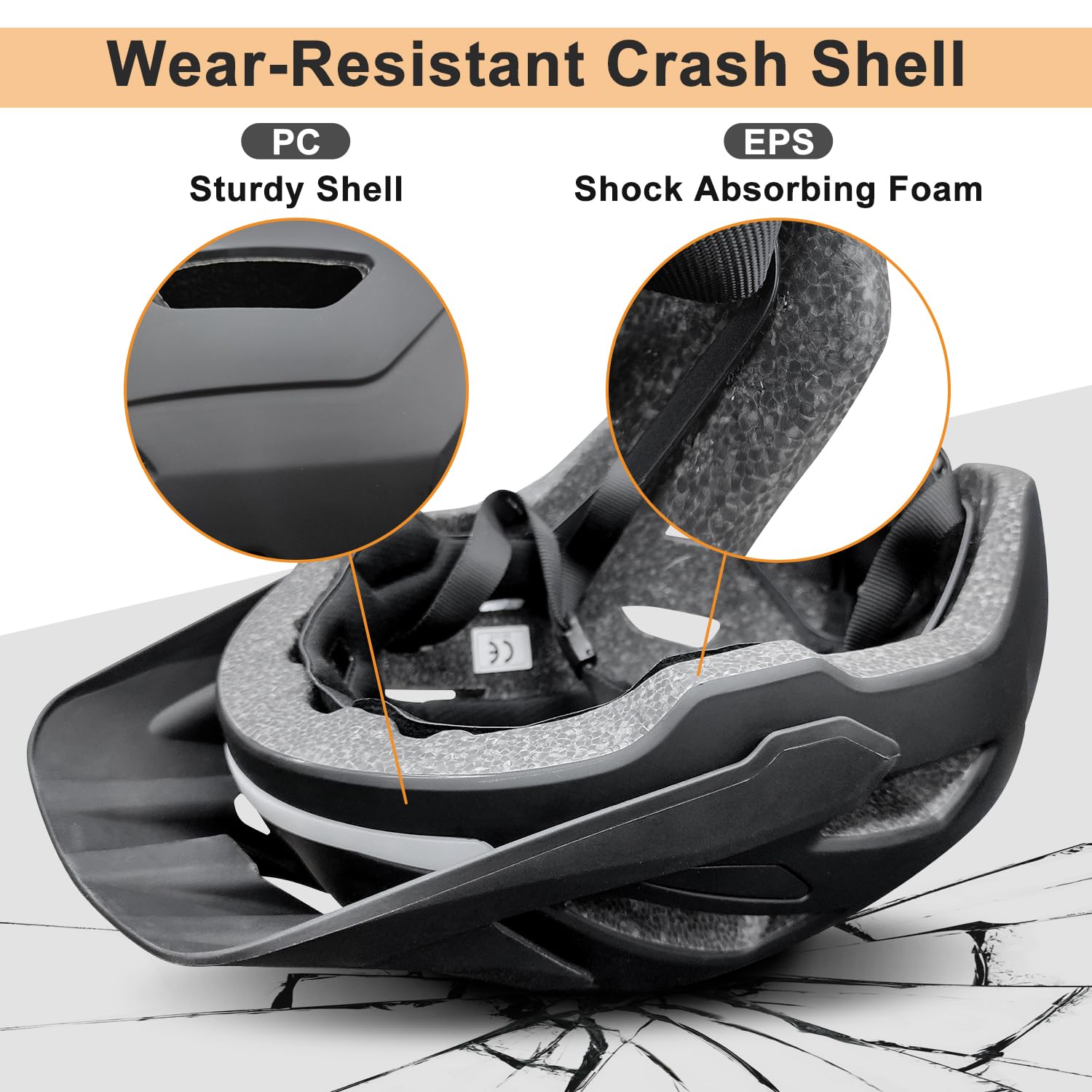 • 【Fahrradhelm mit Sonnenblende】: Dieser Fahrradhelm für Erwachsene ist mit einer speziell entwickelten Sonnenblende ausgestattet, die die Blendung während der Fahrt effektiv reduzieren und die Klarheit der Sicht verbessern kann. Das Visier kann nach oben und unten je nach Bedarf eingestellt werden und kann leicht entfernt werden, wenn nicht in Gebrauch, bequem und praktisch.