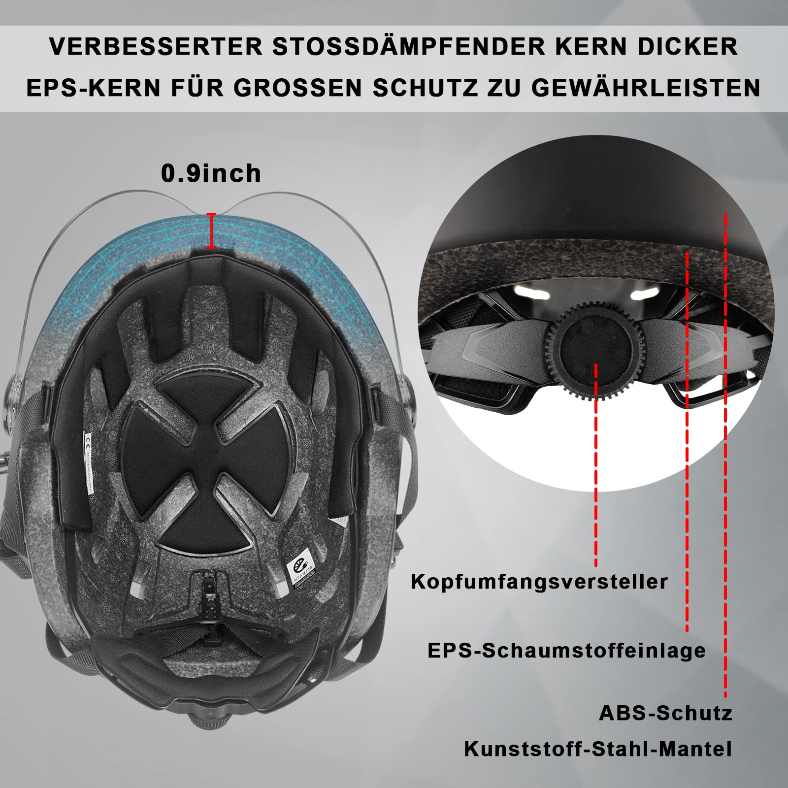 - 【Bequemes und herausnehmbares Innenfutter】: Das feuchtigkeitsableitende, atmungsaktive Innenfutter ermöglicht ein bequemes Tragen des Helms und das herausnehmbare Innenfutter ist leicht zu reinigen.
