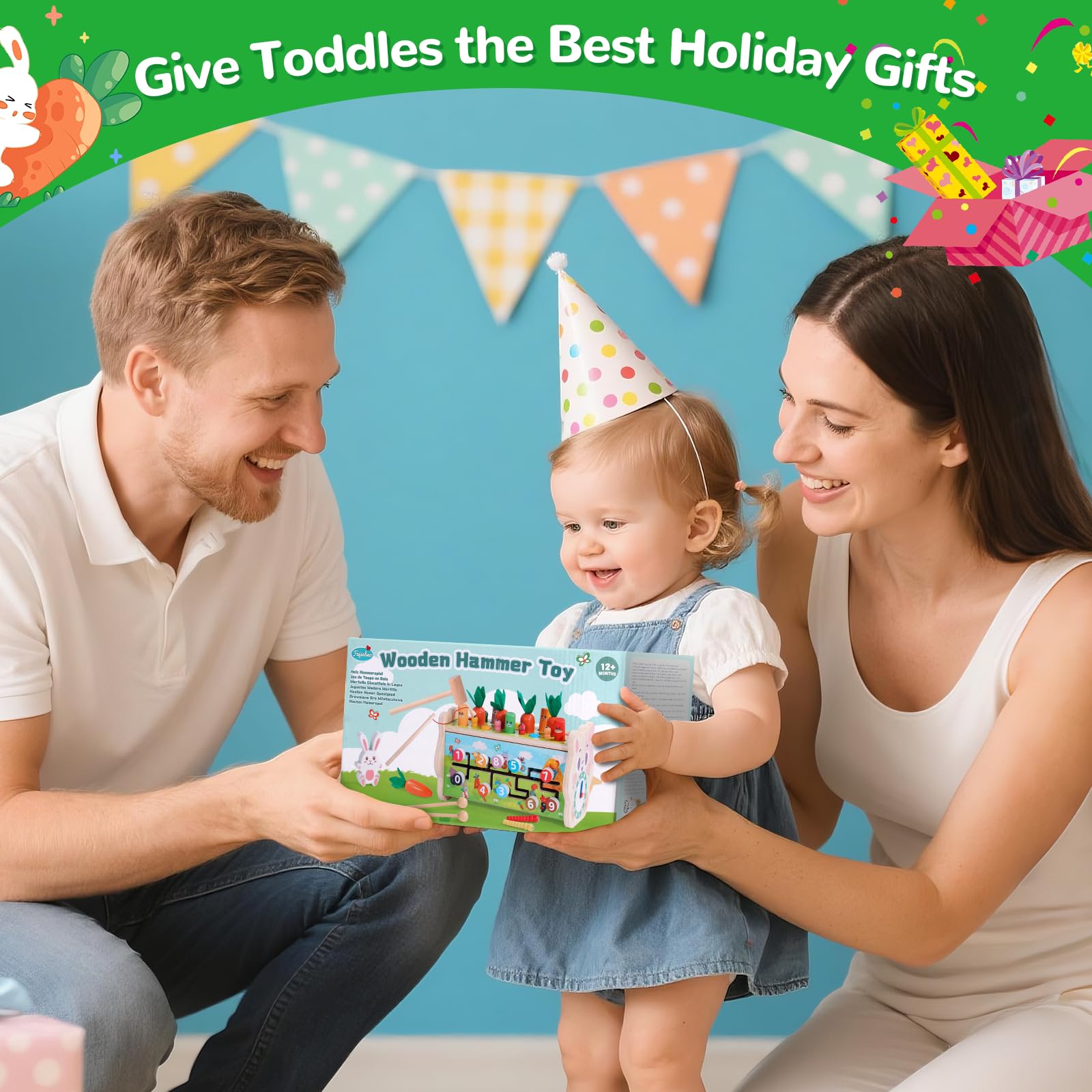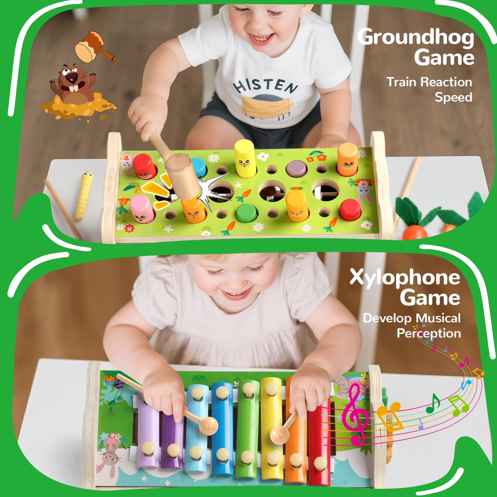 • 【7-in-1 Montessori Spielzeug】Dieses motorikspielzeug ab 1 jahr umfasst 7 spiele: Hammerspiel, Xylophon Kinder, Karottenziehen, Käferfangen, Zahlenlabyrinth, Uhr und Zahnräder. Viel spaß, viel spaß - Kinderspielzeug ab 1 jahr