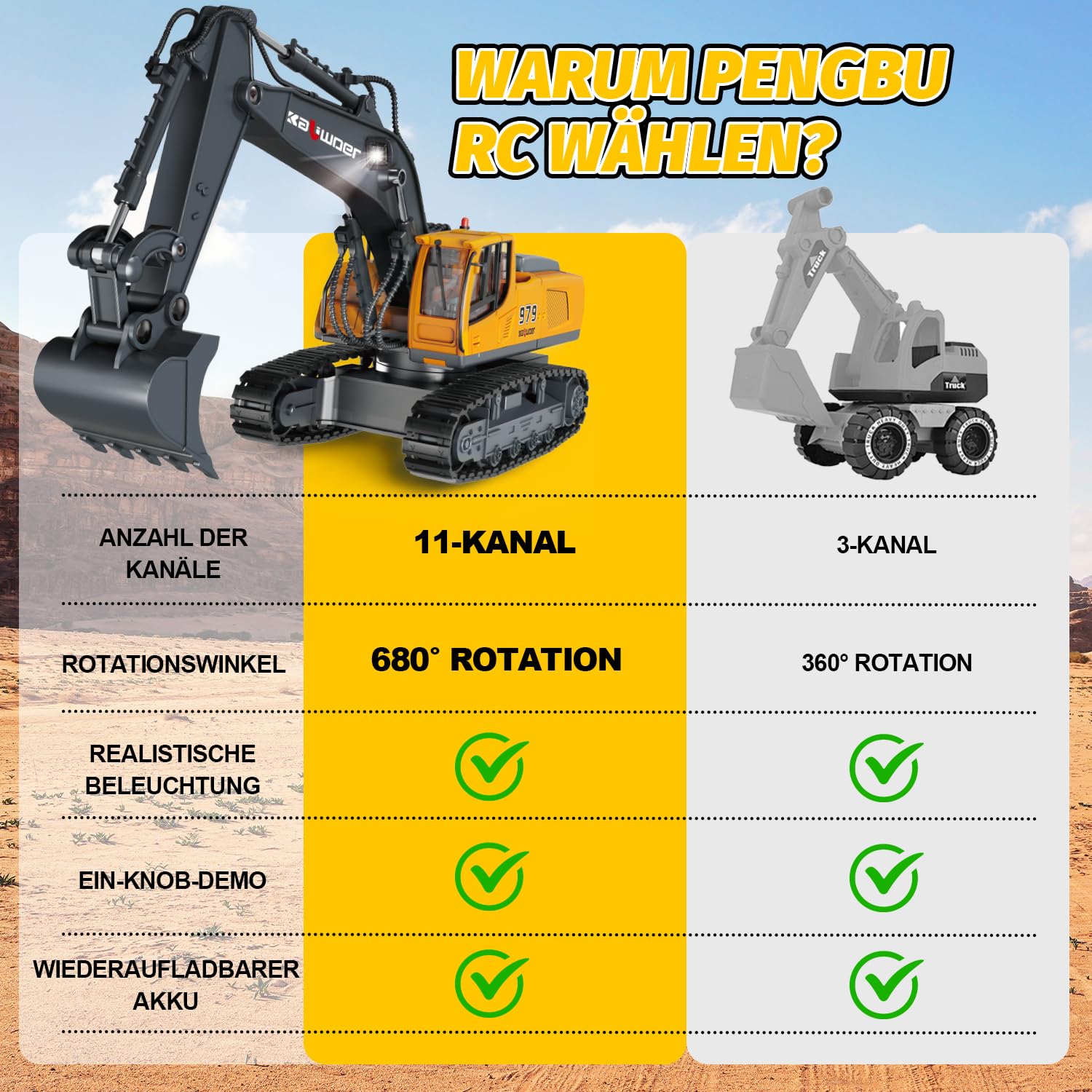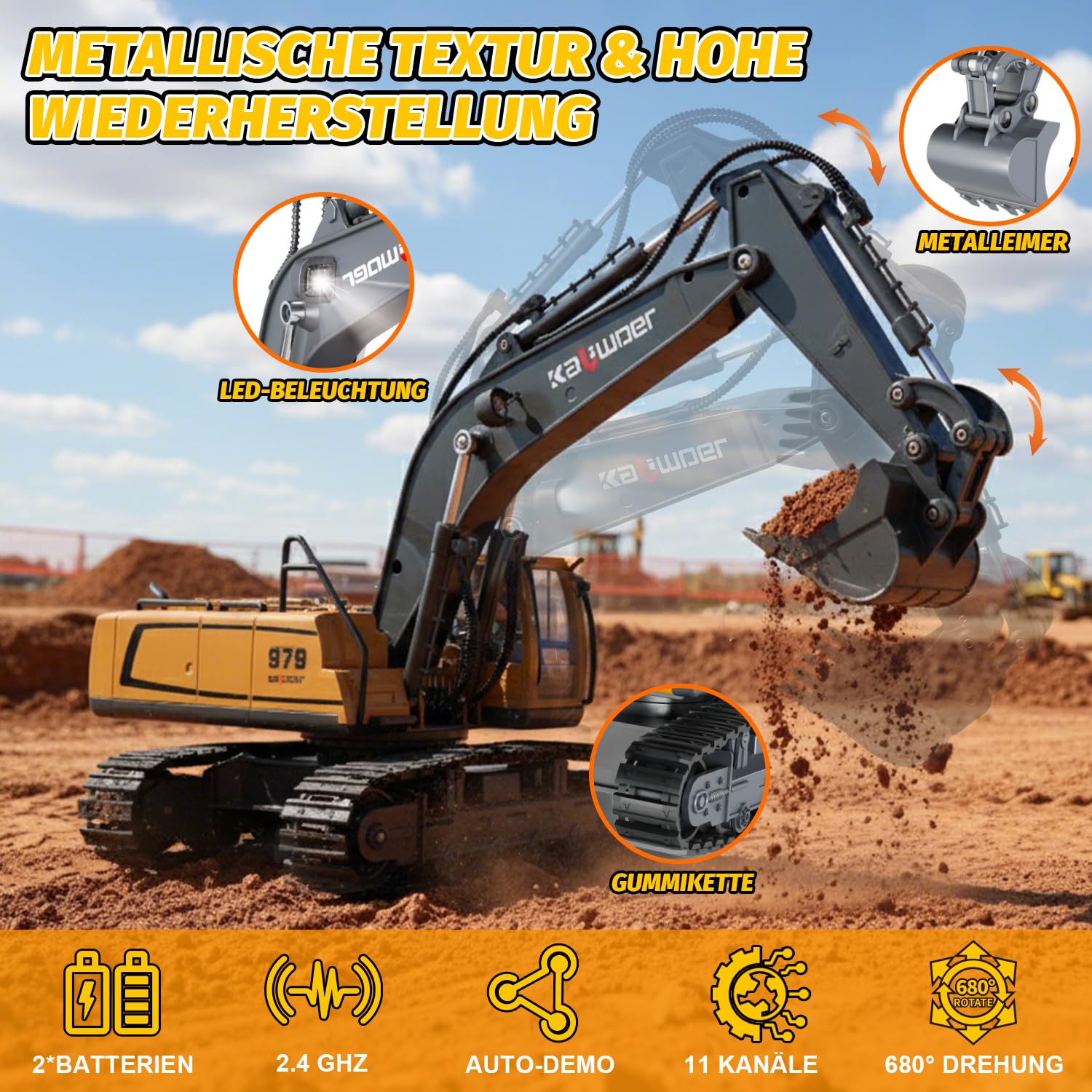 - 【Bagger Ferngesteuert】Der ferngesteuerter Bagger ab 3 4 5 6 7 8 Jahre mit 11 Kanäle ist mit vollen Funktionen eine realistische Nachbildung vom echten bagger mit fernbedienung. Die kleine Ingenieure können den Bagger so steuern, dass er, wie ein echter rc bagger, Sand in der Sandkasten transportiert. Dieser rc bagger metall ferngesteuert kann sowohl zu Hause als auch im Freien für langer Zeit gespielt werden.