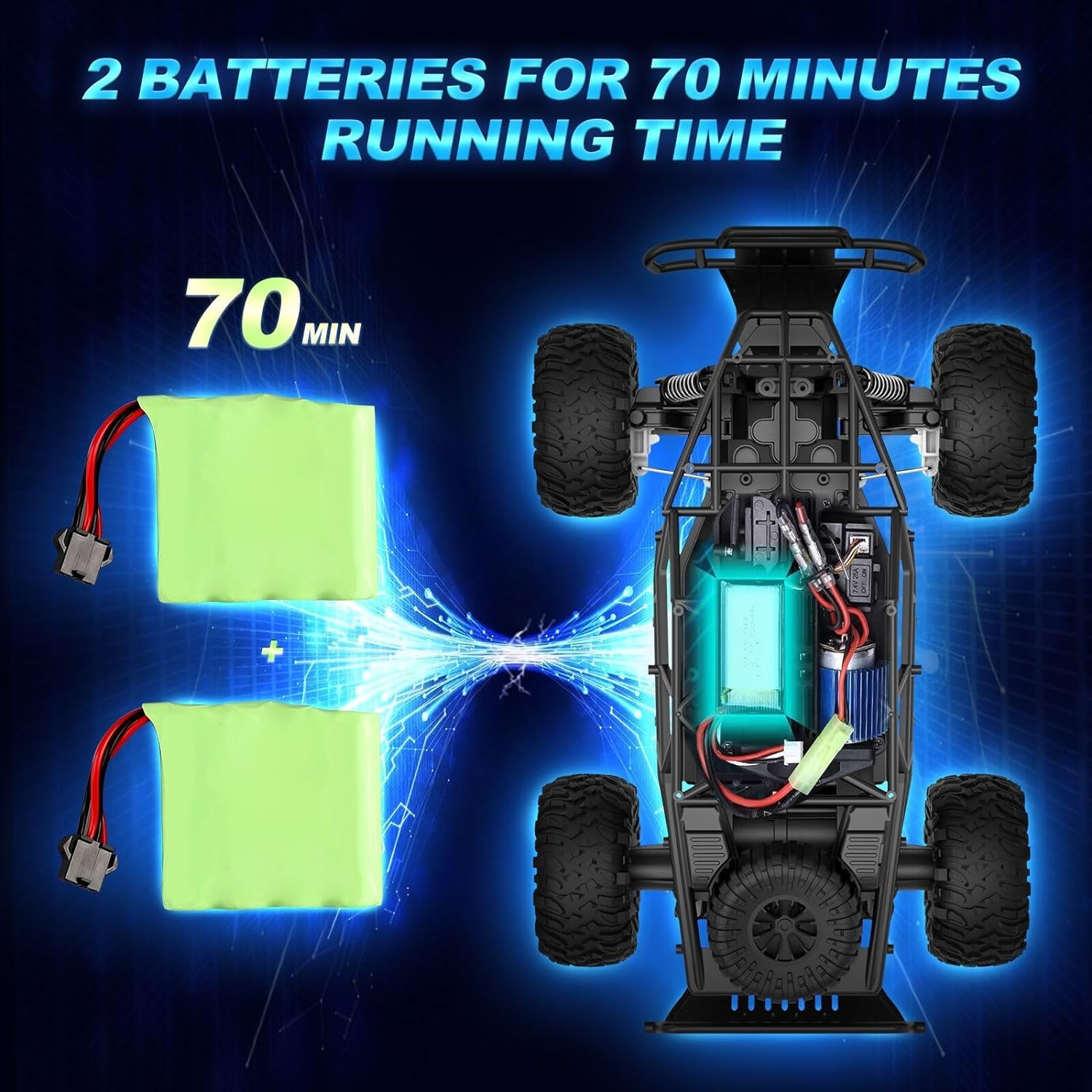 - FERNGESTEUERTES OFF-ROAD RC AUTO: Ausgezeichnetes Design Offroad Buggy im Maßstab 1:16, Spitzengeschwindigkeiten von bis zu 25 km/h erreicht, mit 2 Akku ausgestattet, bis zu 70 Minuten verwendet werden.