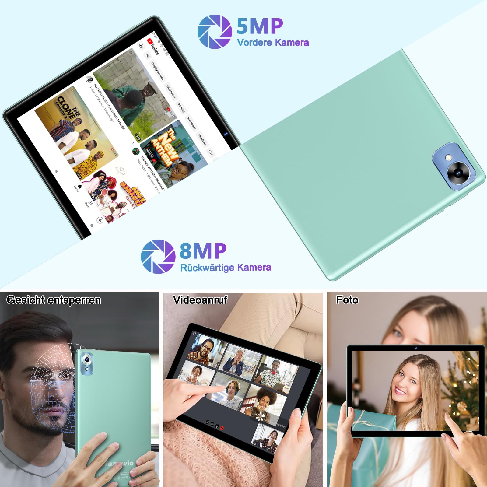 - 【Tablet 10 Zoll IPS Display + Widevine L1】Das 10-Zoll-Tablet erfüllt Ihre täglichen Arbeits- und Unterhaltungsbedürfnisse mit einer Bildschirmauflösung von 1280 x 800 IPS für ein noch angenehmeres visuelles Erlebnis. Außerdem unterstützt es Widevine L1 für die einfache Anzeige von Premium-HD-Inhalten und Streaming-Diensten wie Prime Video,Tiktok und mehr.