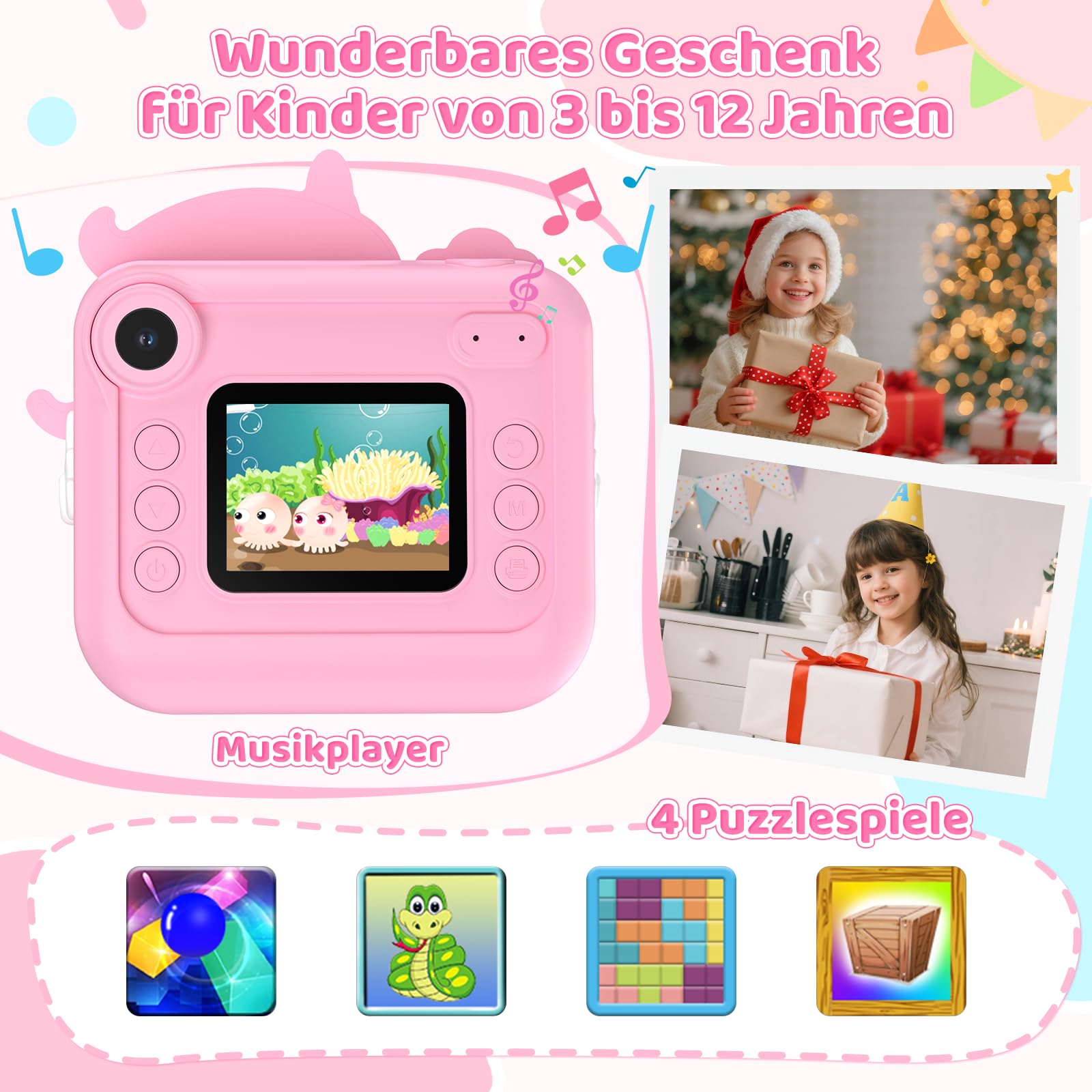 • 【Ideales Spielzeuggeschenk für Kinder】: Diese digitalkamera kinder ist mehr als nur ein Spielzeug. Sie ermöglicht es Kindern, ihre Kindheitserinnerungen festzuhalten und die Welt durch ihre eigene Linse zu entdecken.Diese kamera kinder sofortdruck ist das perfekte Geschenk für Mädchen und Jungen im Alter von 3 bis 12 Jahren und eignet sich hervorragend als Geschenk zu Geburtstagen, Weihnachten, Neujahr, zum Kindertag, Ostern und Halloween.
