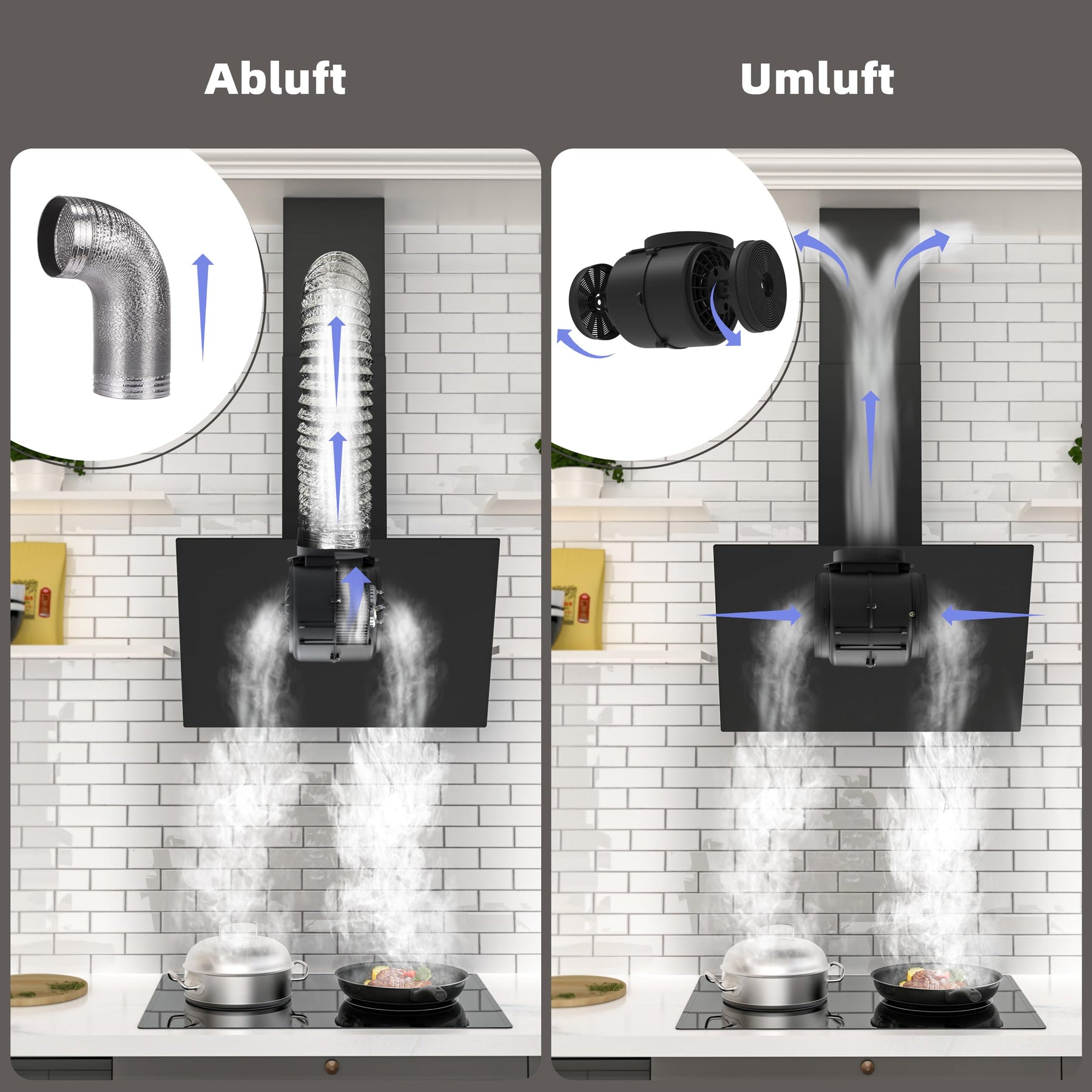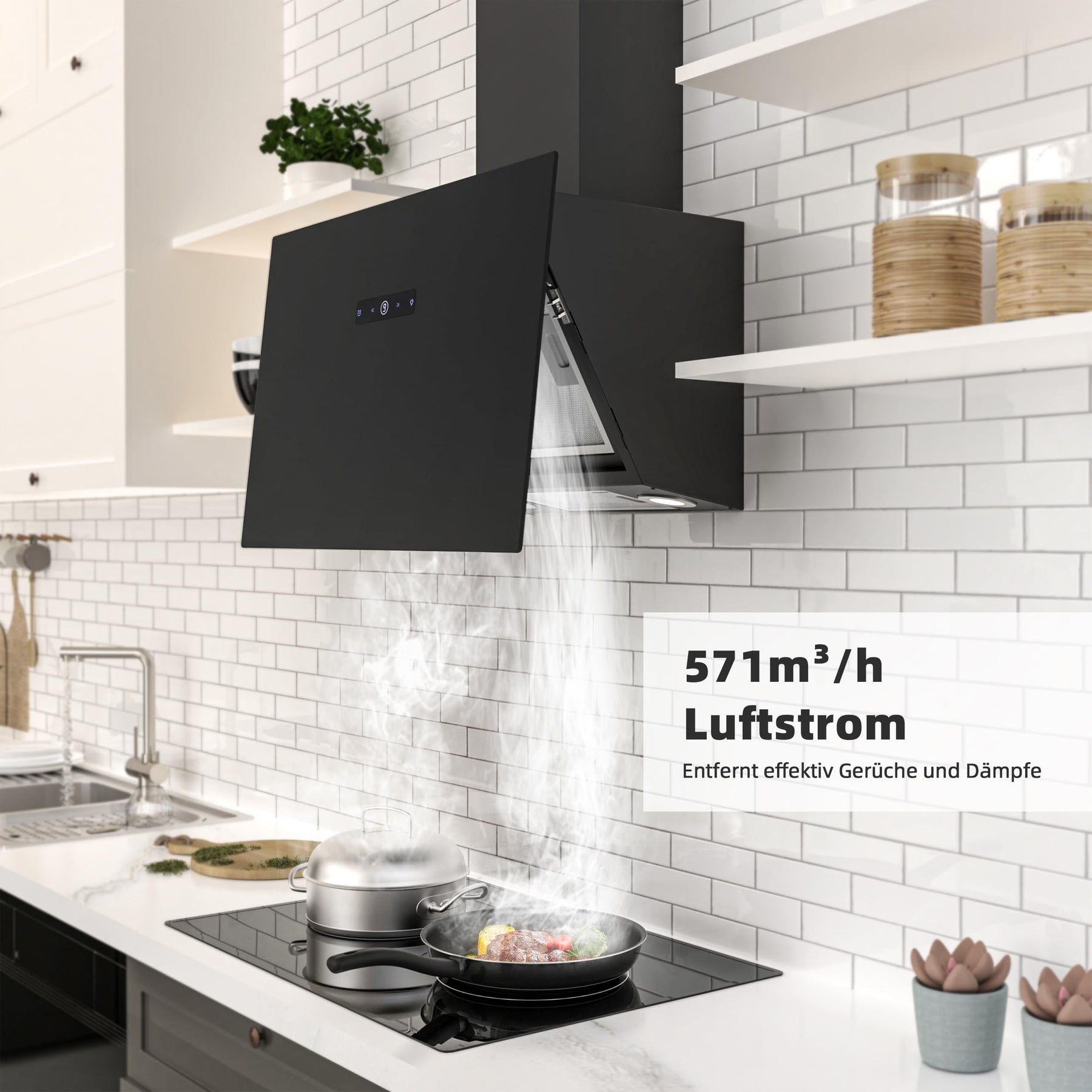 - LEISTUNGSSTARKE DUNSTABZUG - Bis zu 571 m³/h starke Saugkraft großer luftstrom.Das unterstützt dabei, Fett, Dämpfe und Dampf in der Küche effizienter zu absorbieren.Wahlweise sind die Betriebsarten Abluft oder Umluft möglich.