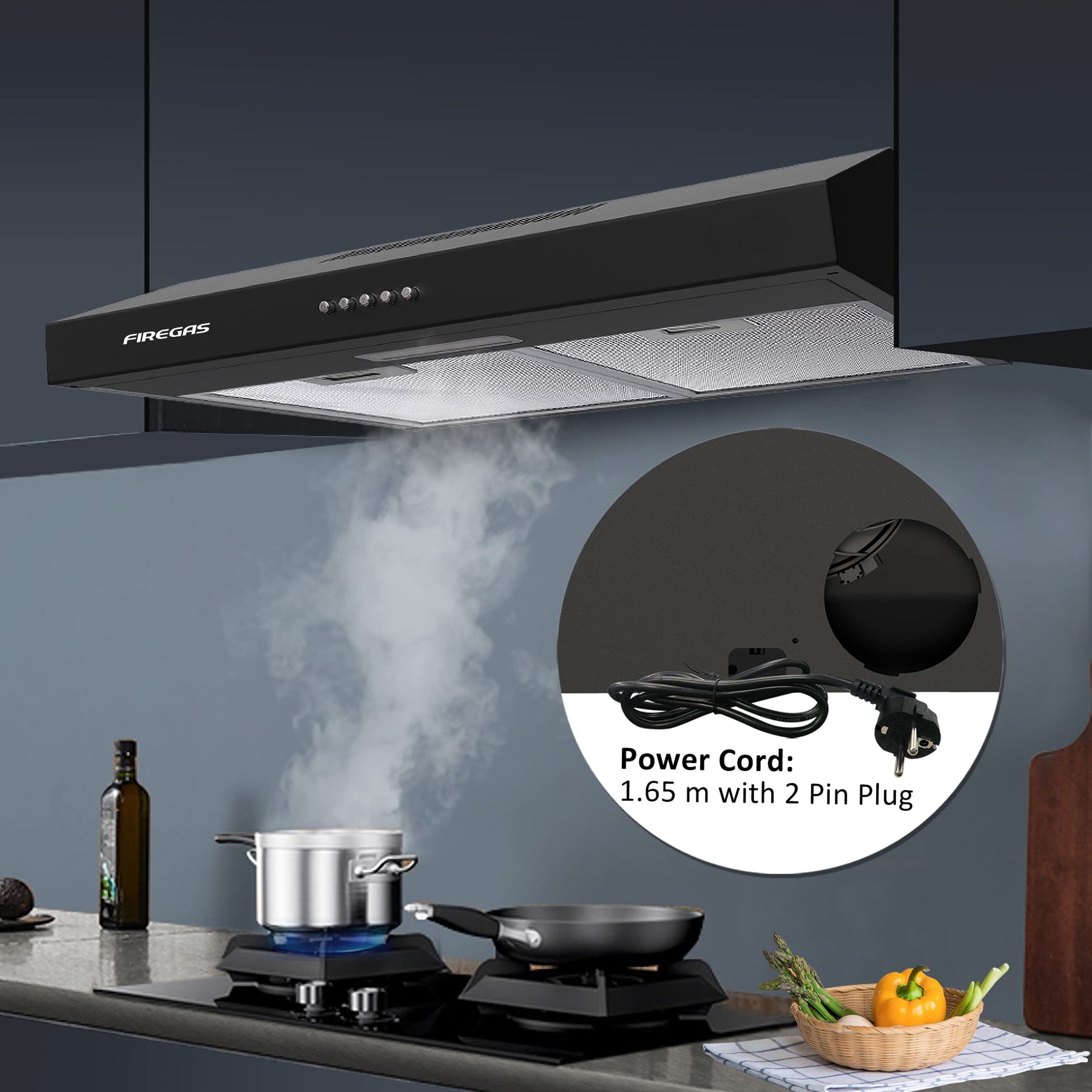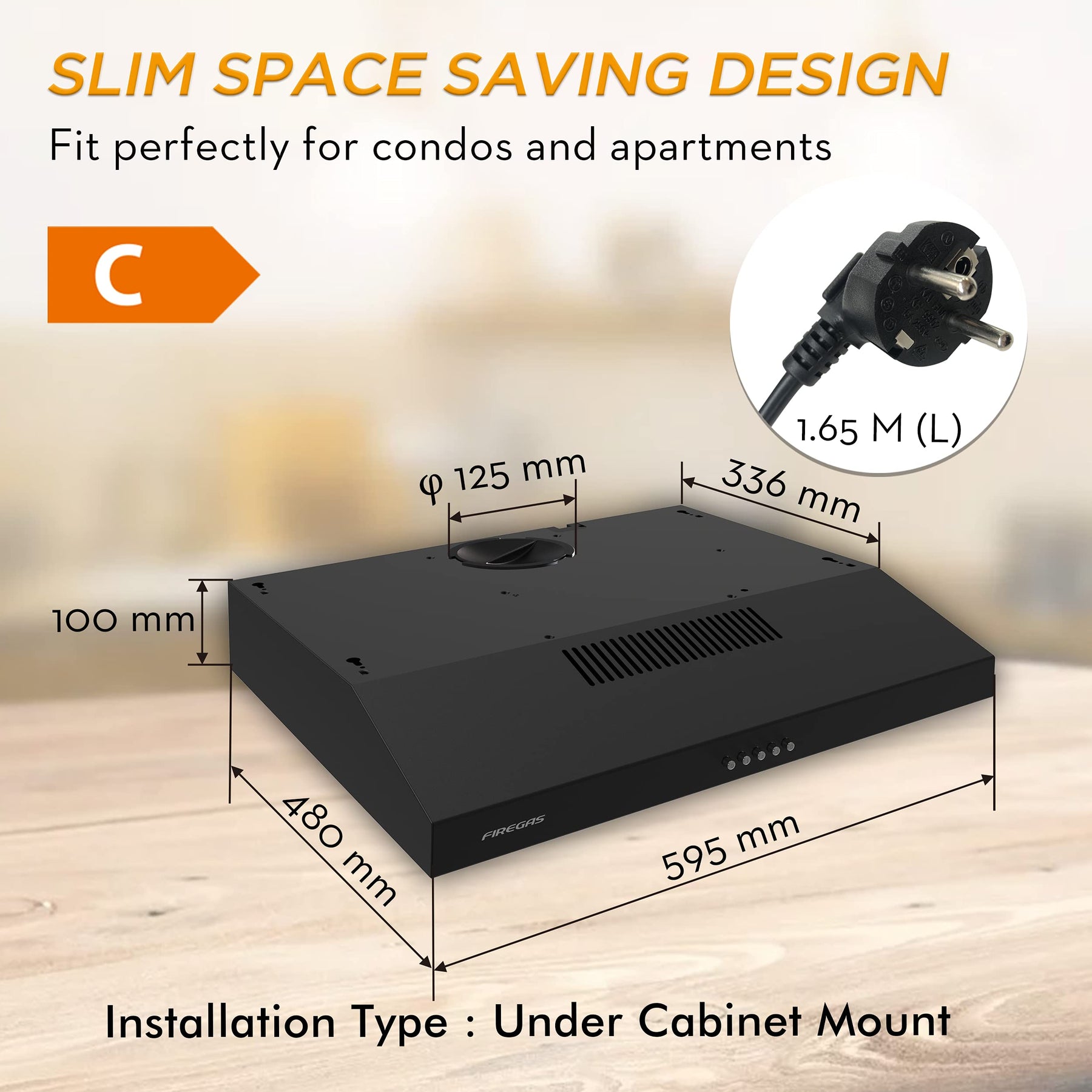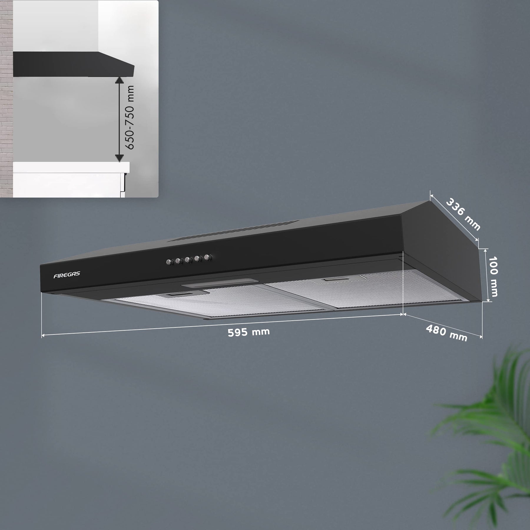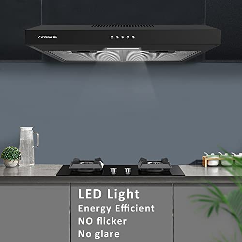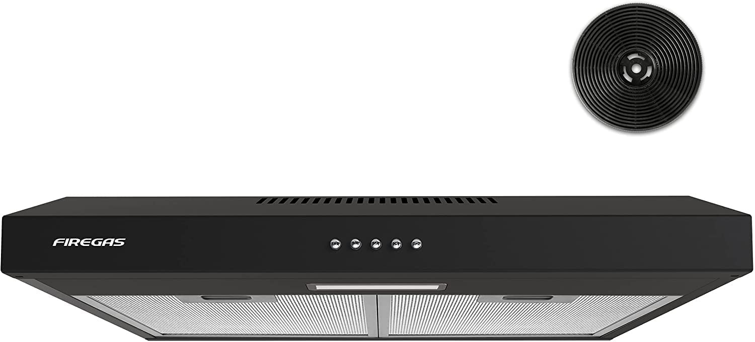 FIREGAS Unterbauhaube Dunstabzugshaube 60cm, Einbau 3 Leistungsstufen, Kann Abluft oder Umluft, Integrierte oberschrank Unterbauhaube, Kompatible CC130 Kohlefilter, Schwarz