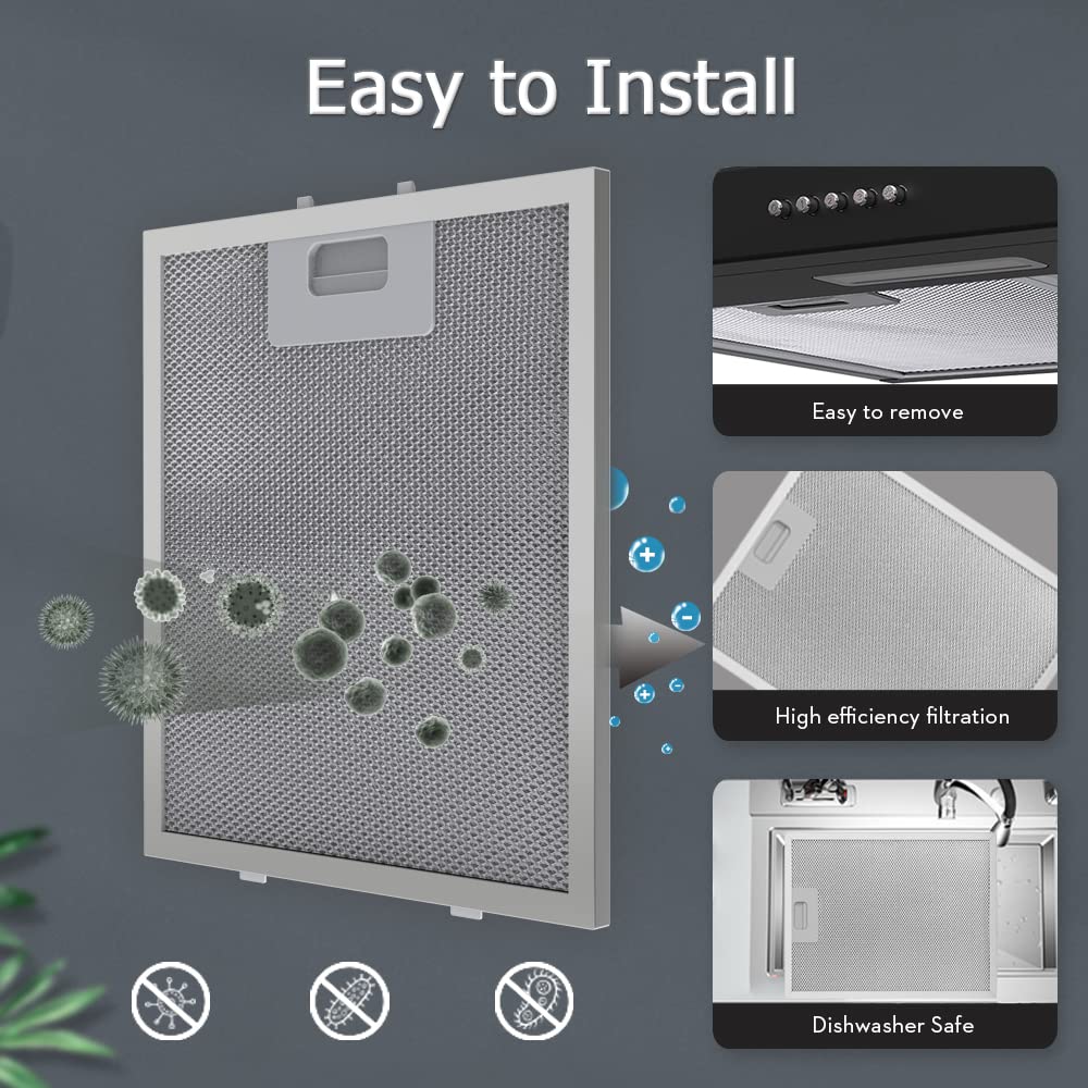 • Elegant und praktisch: 2 x 3-lagige Aluminium-Fettfilter verhindern, dass Fett in den Motor gelangt und ihn beschädigt, Zum Spülen in der Spülmaschine lässt es sich problemlos demontieren, es sagt dem Fett in der Küche eindeutig den Kampf an und reduziert klebrige Ablagerungen auf Küchenmöbeln deutlich.