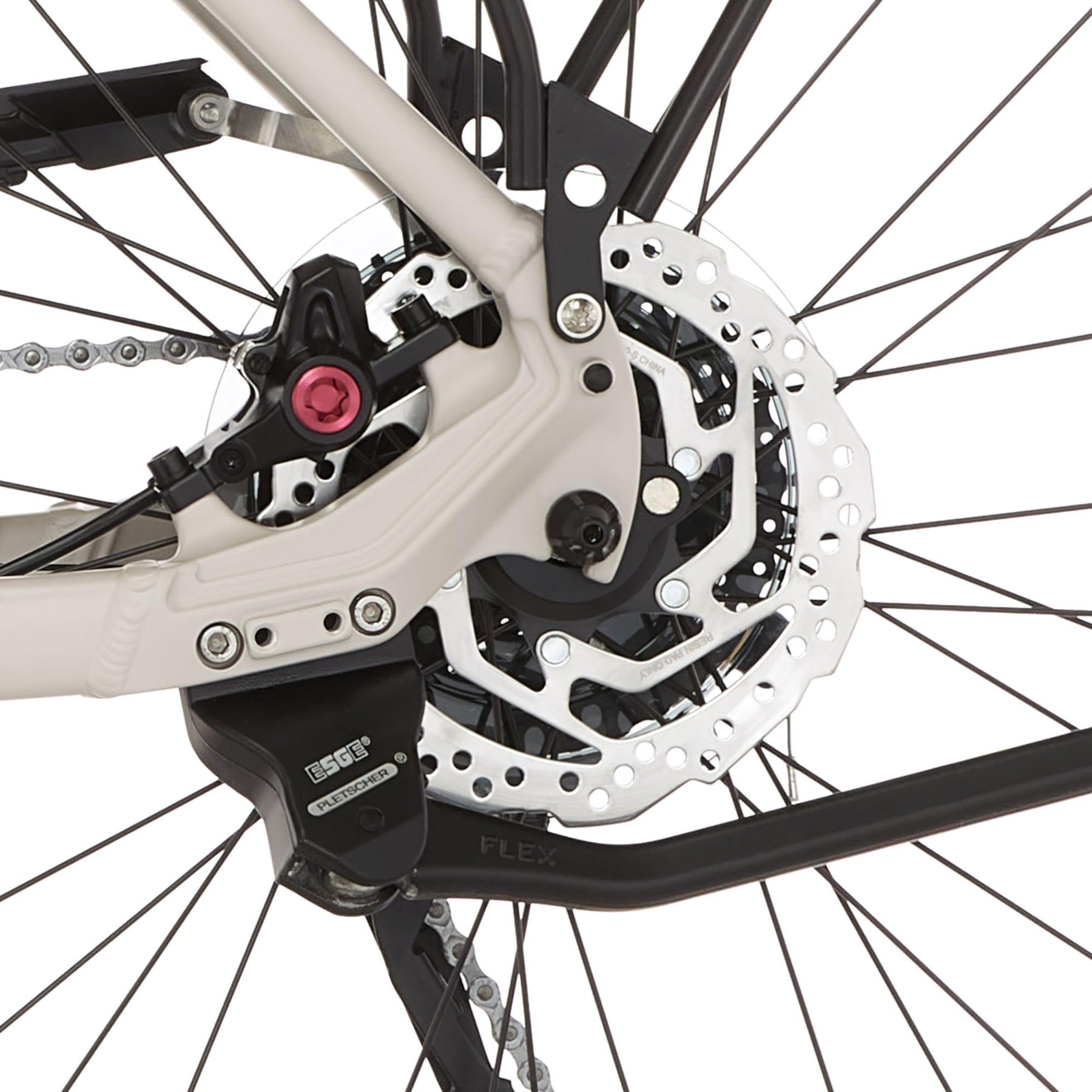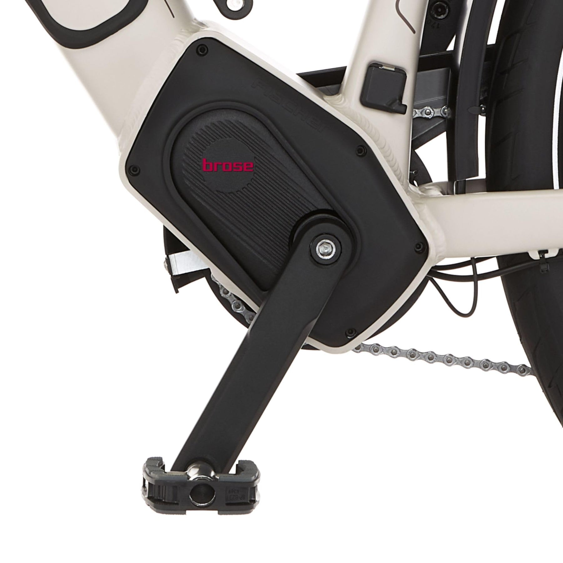 Einzelheiten: Leicht, leise, stark – treibt der BROSE Drive T Mag Mittelmotor mit 70Nm das sportive E-Bike Trekking besonders auf längeren Distanzen und bergauf optimal voran. Für ein natürliches Fahrgefühl sorgt eine individuell konfigurierte Pedelec Trittunterstützung. Der vollständig ins Unterrohr integrierte 630 Wh Akku sorgt für große Reichweiten bis zu maximal 150 km. Großen Komfort auf der Straße oder auf unebenem Terrain bieten die 10-Gang Kettenschaltung, die Federsattelstütze von Humpert ergotec und die XCM Federgabel von SUNTOUR. Wer auf seinen E Bike Touren häufig auf asphaltierten, gut befestigten Wegen unterwegs ist, der kann das Einfedern der Federgabel mittels Lock-Funktion direkt an der Gabel komplett blockieren und somit eine härtere Fahrwerkseinstellung wählen. Zum Sicherheitspaket des Pedelecs gehören hydraulische Scheibenbremsen, ein 90 Lux LED-Scheinwerfer sowie eine 55 mm Bereifung für Traktion, Grip und Dämpfung. Das Elektrofahrrad ist außerdem für unsere FISCHER Kinderanhänger geprüft. Konnektivität via Bluetooth und FISCHER E-Connect App sind ebenfalls onboard.