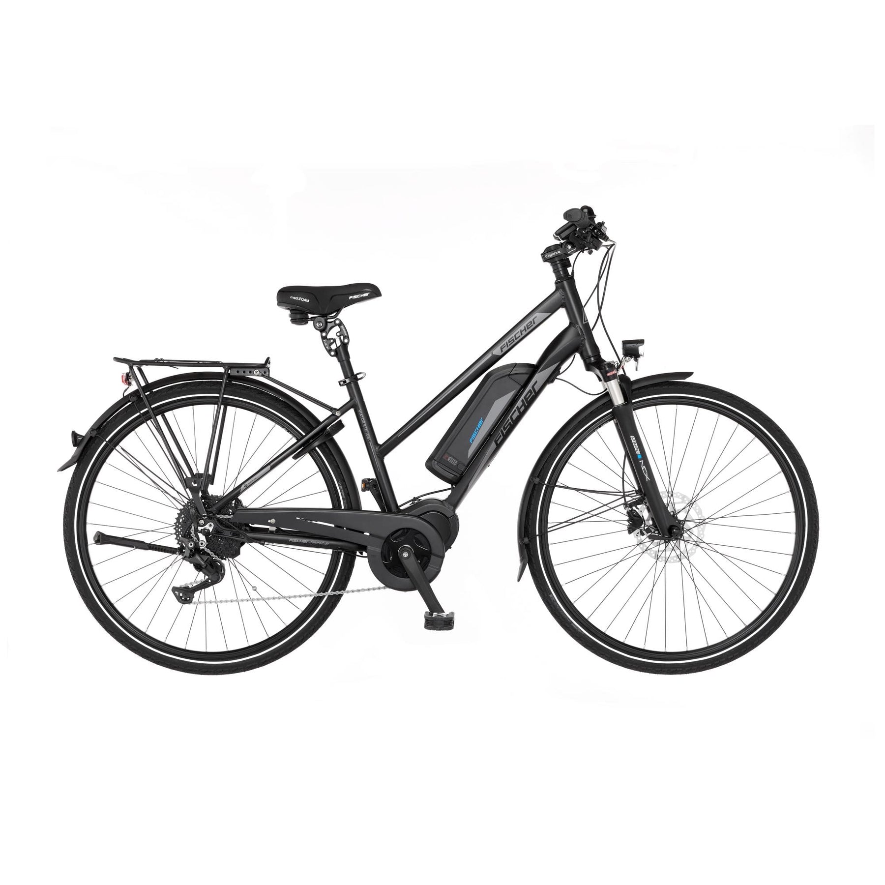 - FEDERUNG: Marken-Federgabel NX-1 von SR SUNTOUR mit Federweg von 63 mm für sichere Bodenhaftung, gefederte Sattelstütze