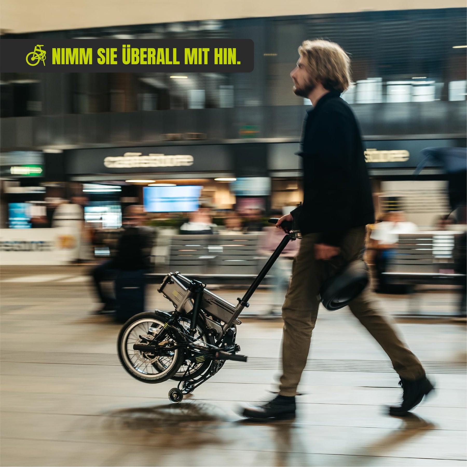 Faltbares und Tragbares Design Das Modell SUPRA 4.0+ ist kompakt und lässt sich in Sekundenschnelle zusammenklappen. Mit einer zusammengeklappten Größe von 62x33x65 cm lässt es sich bequem in kleinen Räumen verstauen, mühelos transportieren und du kannst Orte erreichen, die vorher nicht zugänglich waren. Ideal für alle, die nach Praktikabilität in der Stadt suchen. Es verfügt über ein Ziehsystem mit kleinen, ausziehbaren Rädern, das es ermöglicht, das Fahrrad wie einen Wagen zu bewegen.