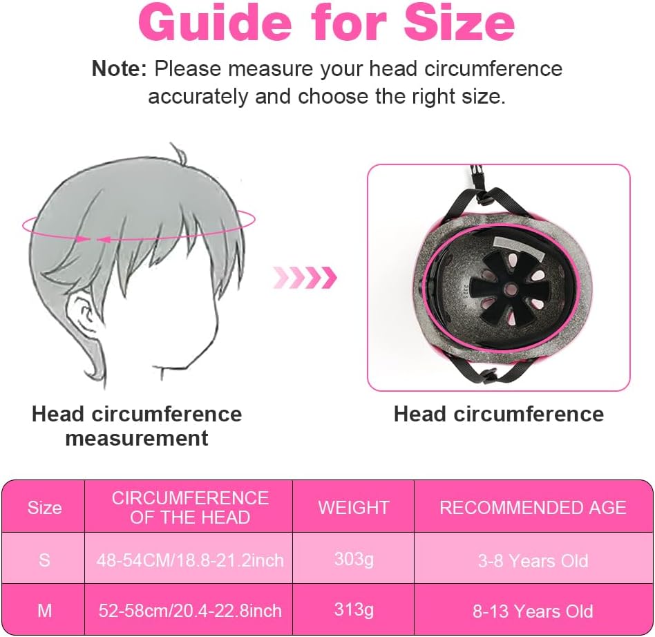 • 🌈🌈【Verstellbarer Kinderhelm】Dieser Kinderfahrradhelm ist verstellbar. Erhältlich in zwei Größen: S und M. S: 48–54 cm, geeignet für 2–8 Jahre; M: 52–58 cm, geeignet für 9–13 Jahre. Sie können ihn durch Betätigen des Drehknopfs und des Kinnriemens auf der Rückseite des Helms an den Kopfumfang Ihres Kindes anpassen, um eine bessere Passform zu gewährleisten.