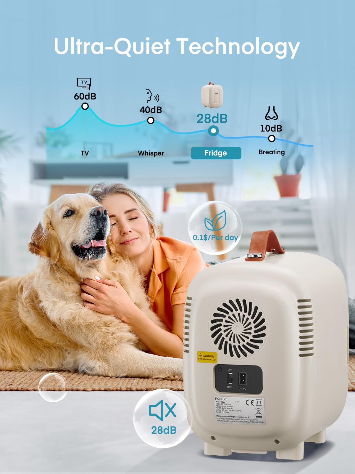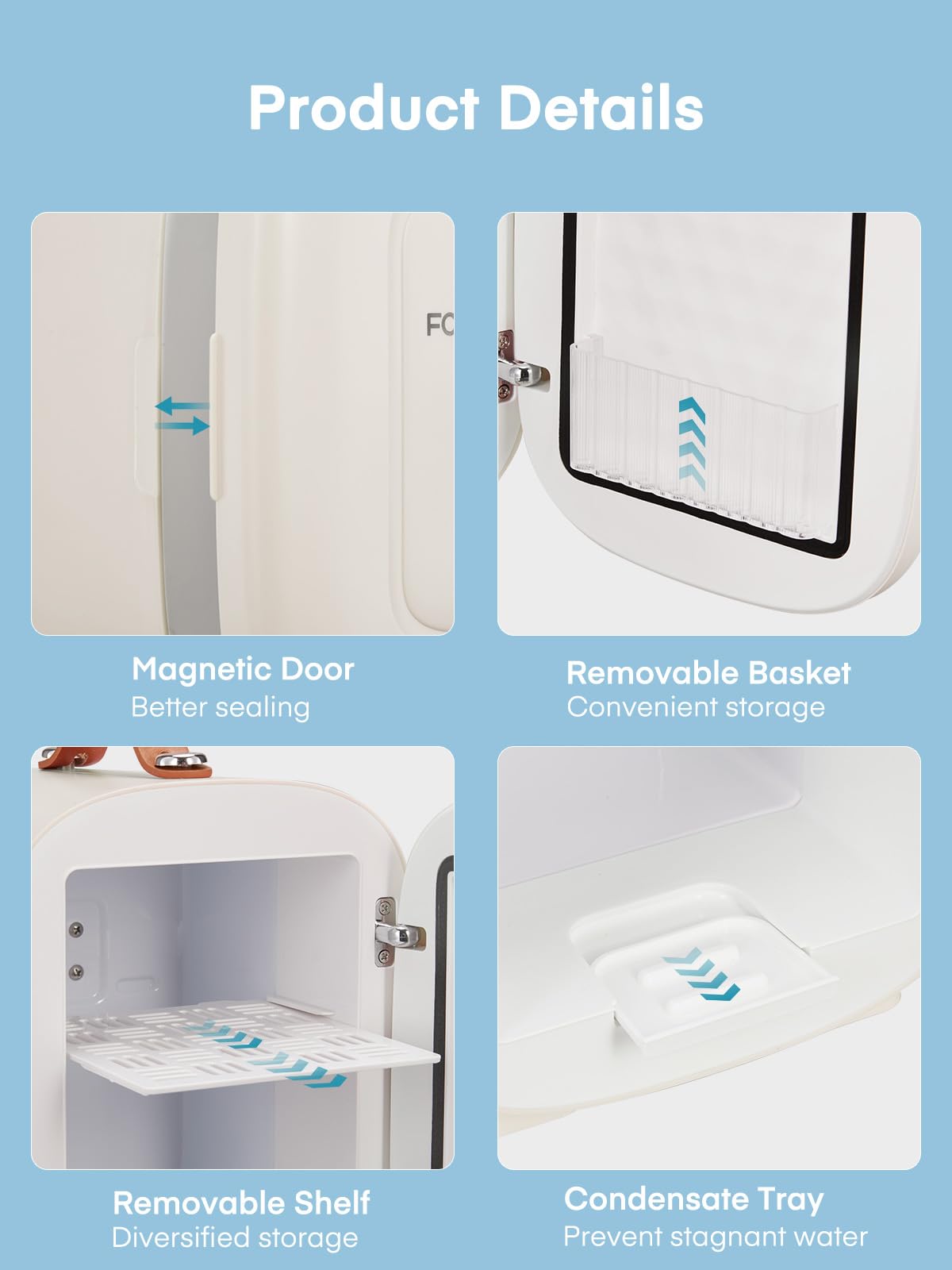 FOHERE Mini Kühlschrank 5 Liter /6 Dosen, Zusätzliche USB-Stromversorgung, 220V AC/12V DC, Getränke & Skincare Mini-Kühlschrank für Schlafzimmer, Auto, Schlafsäle, Büro Schreibtisch, Weiß