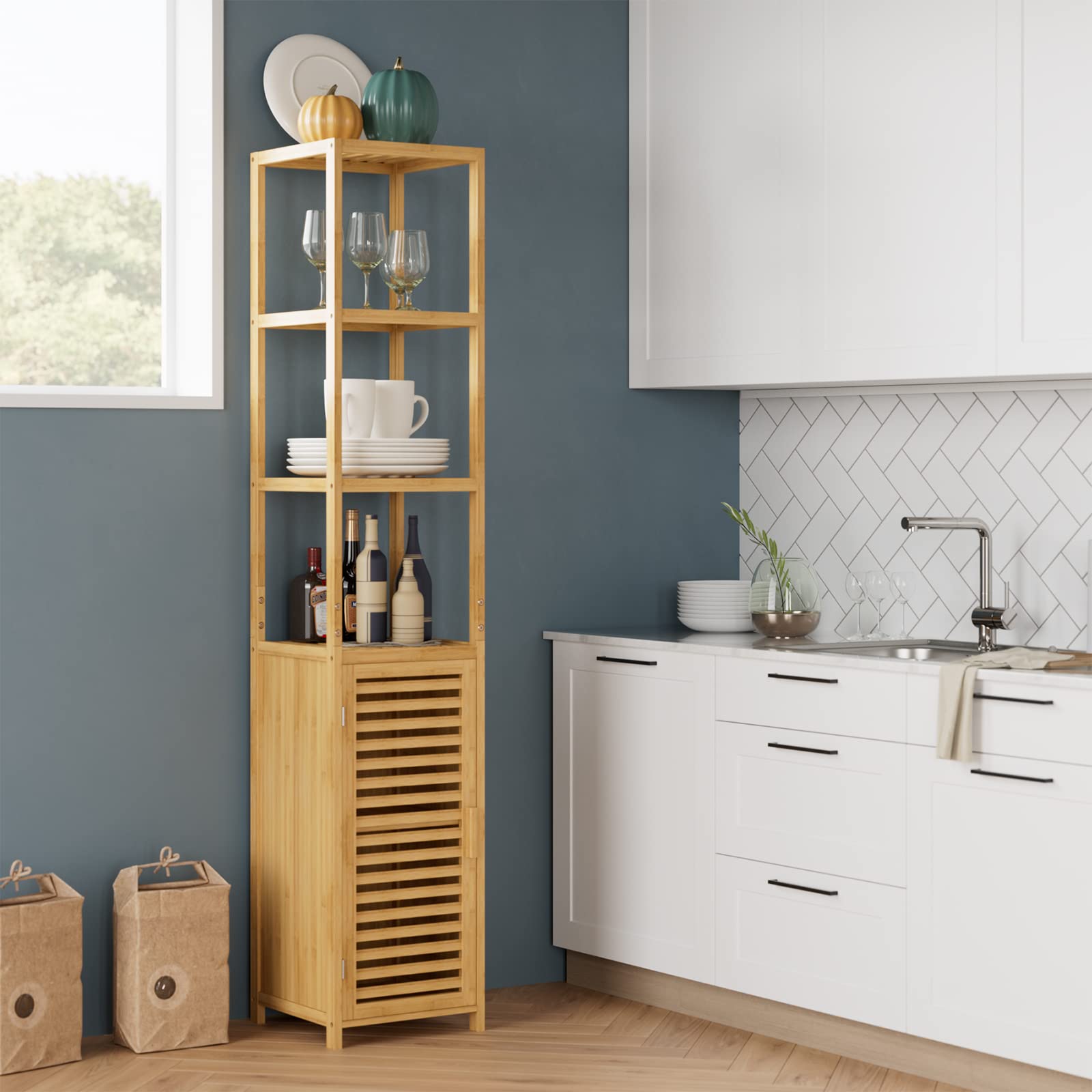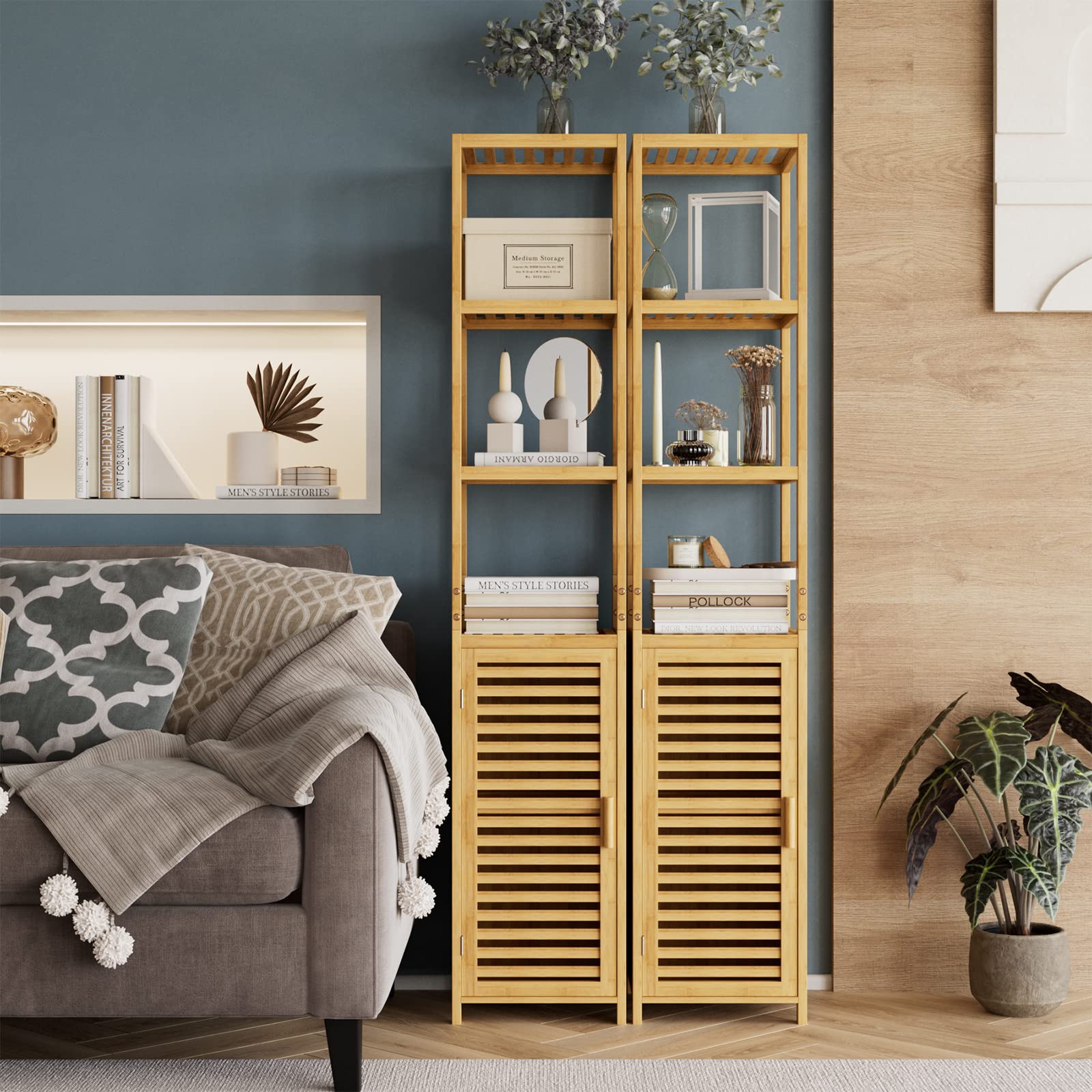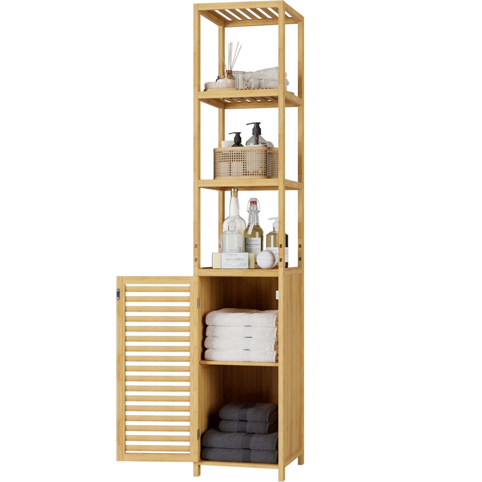 - Multifunktionaler Badschrank: Drei offene Fächer ermöglichen den einfachen Zugriff auf Handtücher, Waschlappen, Kleidung und mehr. Die Lamellentür schützen Ihre Privatsphäre und dienen gleichzeitig als Staubschutz. Es eignet sich für Badregal, Küchenregal und Aufbewahrungsregal.