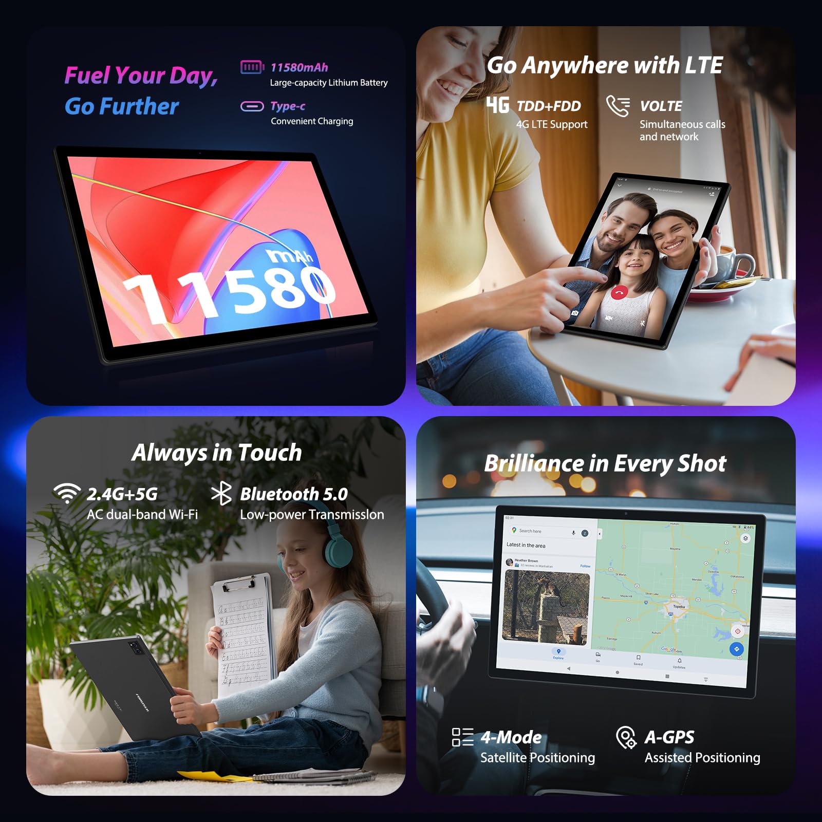 - 4G LTE + 2.4G/5G WLAN+36GBRAM+256GB ROM : Die 4G LTE Funktion ermöglicht es Benutzern, eine Hochgeschwindigkeits-Internetverbindung im mobilen Zustand aufrechtzuerhalten, wie z.B. unterwegs oder in Gebieten ohne WiFi-Abdeckung, 2.4G/5G WLAN bietet Verbindungsoptionen in Gebieten mit WiFi-Abdeckung, wie zu Hause, im Büro oder an öffentlichen Orten. Die Datenübertragung ist mit hoher Geschwindigkeit möglich. Das 5G-WLAN bietet eine schnellere drahtlose Verbindungsgeschwindigkeit. Das Tablet ist mit 36 GB RAM und 256 GB ROM ausgestattet. Ob bei der Arbeit, beim Lernen oder bei der Unterhaltung, es ist ein reibungsloses Erlebnis